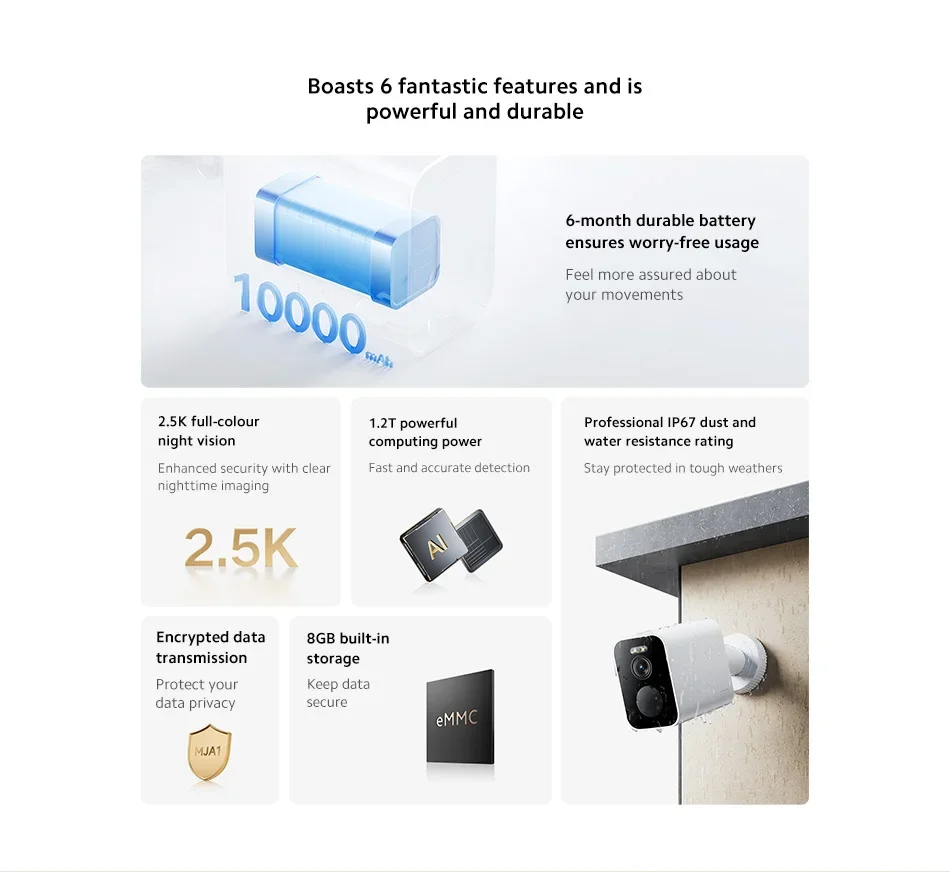 【Fresh finds】Global Version Xiaomi Outdoor Camera BW500 10000mAh Super-large Battery 8GB Onboard Storage IP67 2.5K Resolution