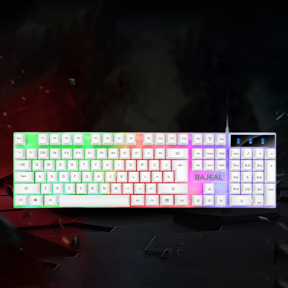 Feature: 1. Strong and Responsive Floating Keycaps: Experience a wired USB keyboard with keycaps that provide a strong rebound force, similar to the feel of mechanical keyboards, delivering comfortable typing experience. 2. Comfortable Touch and Durable Design: The high profile floating keycaps on ergonomic keyboard feature engraved transparent letters, ensuring long-lasting durability and safe usage, while offering a satisfying and comfortable touch. 3. Backlit Beacon Button: Illuminate your backlit keyboard with the press of a button, showcasing cool, dazzling, and captivating lighting effects that enhance the overall aesthetic appeal. 4. Ergonomic Layout and Convenient Media Keys: Designed with an ergonomic low-profile layout, mechanical keyboard provides a comfortable typing position. Featuring 12 media keys, it allows for simple and quick access to multimedia controls, providing added convenience. 5. User-Friendly and Fast Operation: With its ergonomic design and intuitive functionality, gaming keyboard offers a user-friendly experience. The placement of keys and ease of use make it a convenient tool for all your typing needs.
