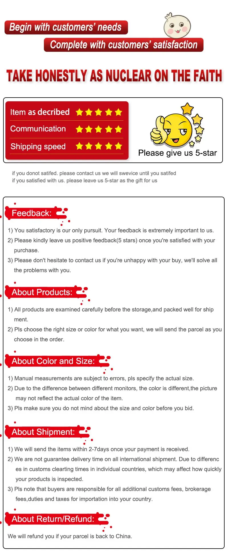 To provide quality qualified products, and we hope all of our customers a better shopping experience, if you are not satisfied with our products and service, please write to us, we will help you and give you the best solution! Happy shopping! !
