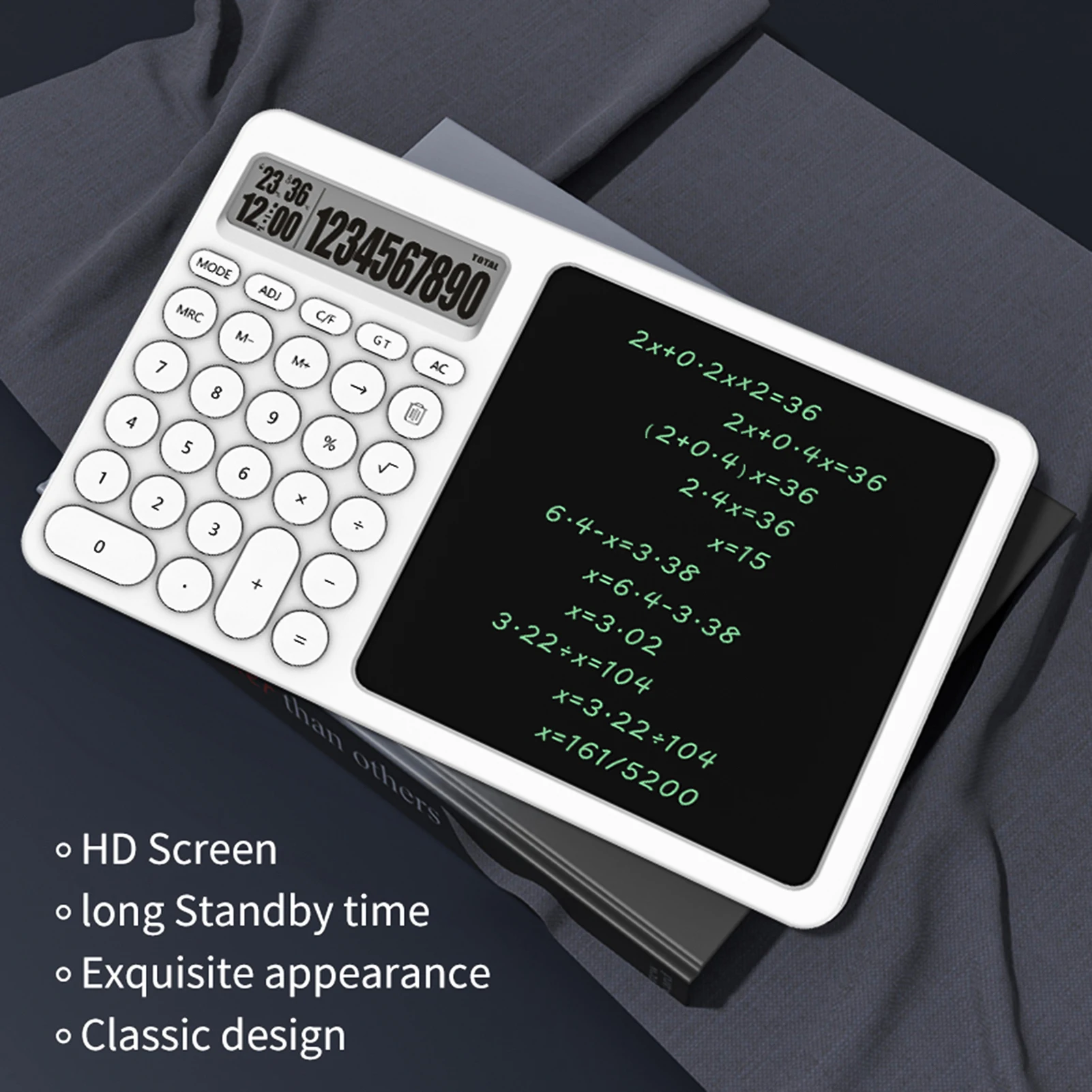 10 Digit Calculator Writing Tablet LCD Display Desk Calculator w/ Erasable Handwriting Notepad Calculator for Office School Home