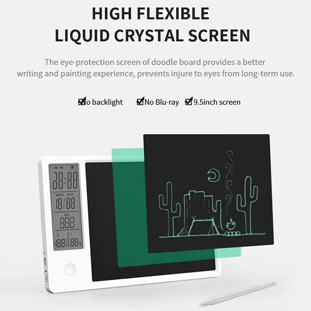 10 Inch LCD Writing Tablet With Clock Calendar Electronic Digital Graphic Drawing Handwriting Pads Temperature Humidity Display