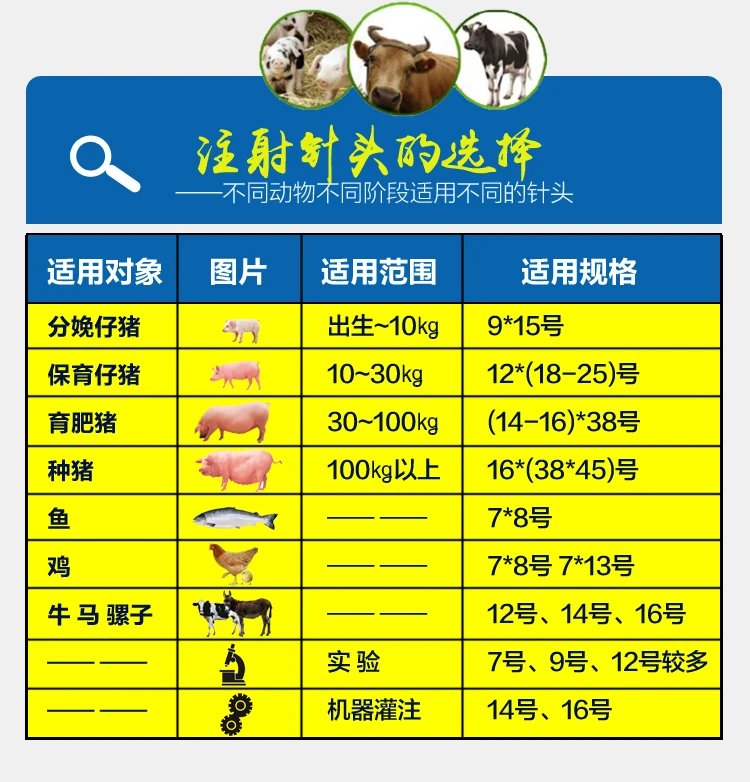 Breeding pigs and sows: above 100kg, 16*38mm is recommended