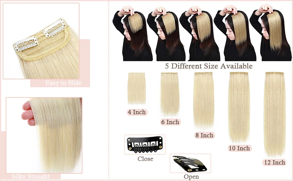 100% Human Hair Topper Invisable Straight Hair Pads Clip In One Piece 2Clips Increase Hair volume Hair Extensions Top Side Cover