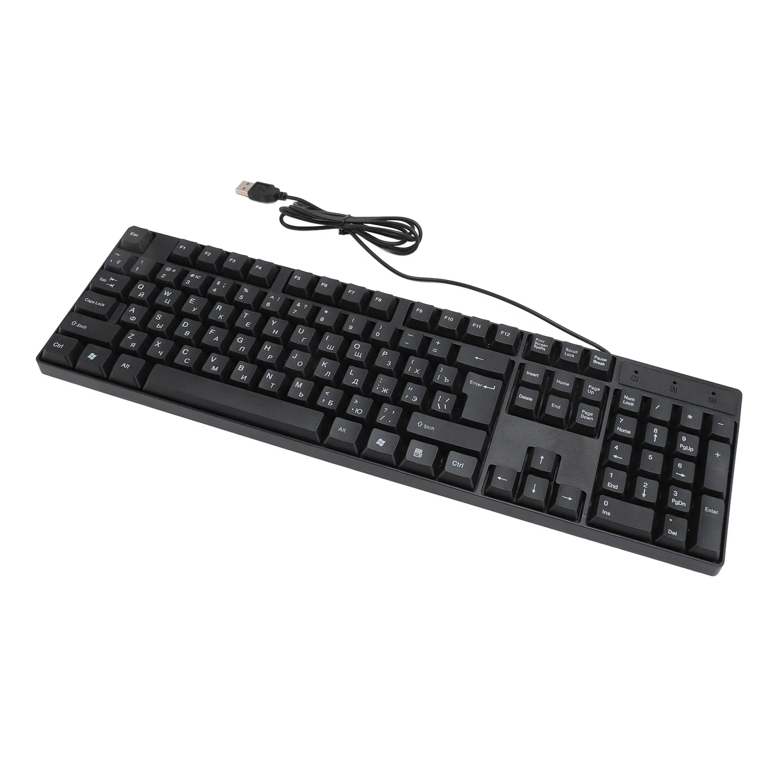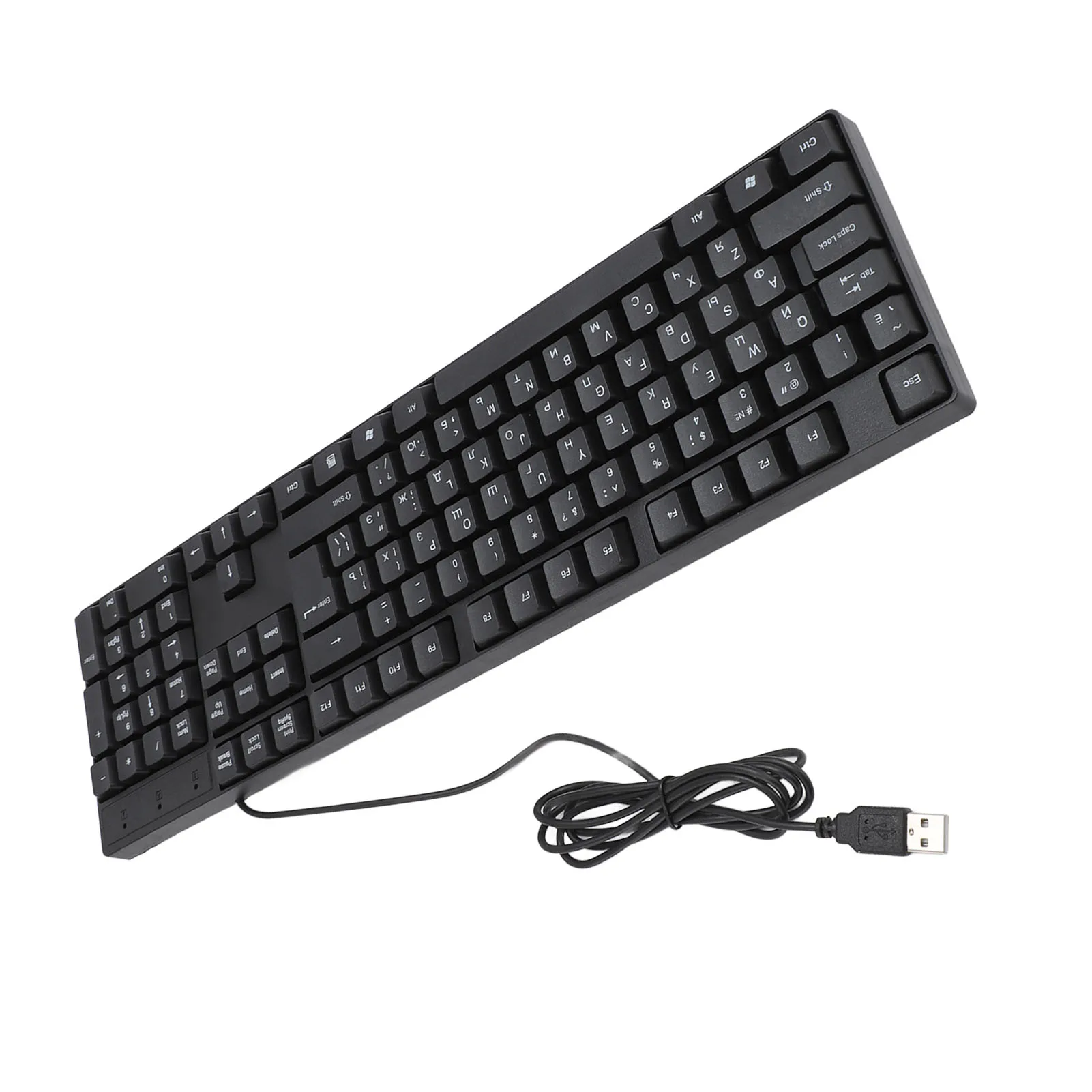 104 Keys USB Wired Keyboard English/Russian/Spanish/French Language Ergonomic Design Gaming Keyboard for Office Laptops Desktops