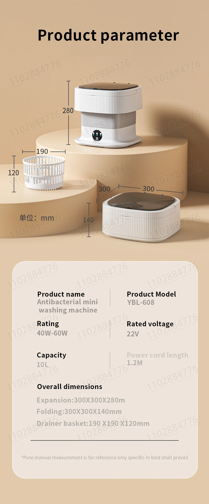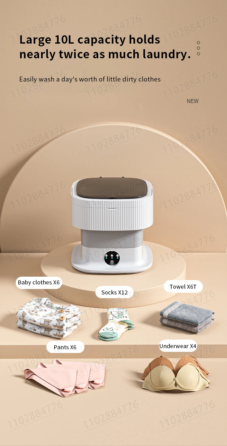 10L high-end foldable portable washing machine with large capacity blue light timed washing and dehydration washing machine