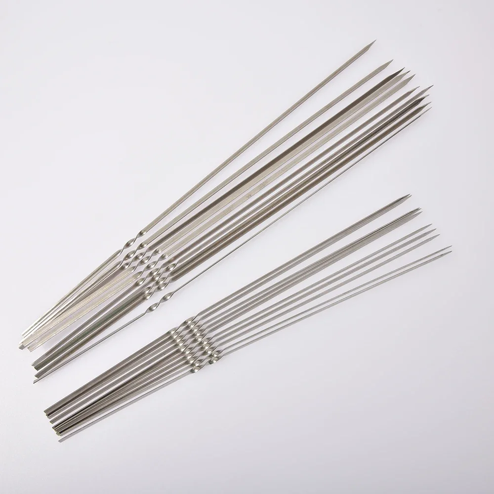 10Pcs Stainless Steel Barbecue Skewer Reusable BBQ Skewers Iron Stick For Outdoor Camping Picnic Tools