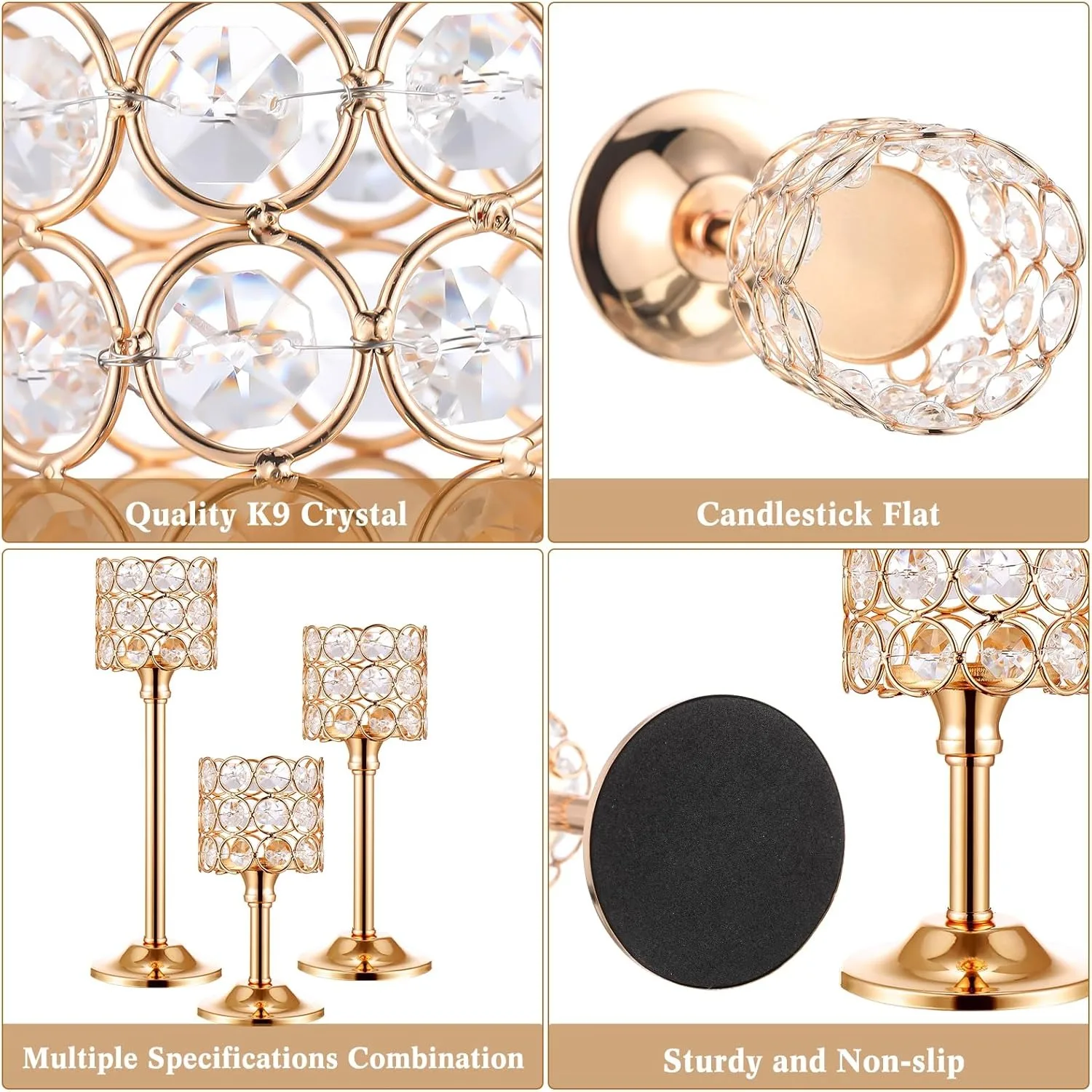 - What You Will Receive: a pack of 12 of our gold crystal candle holders in three sizes, large 3.2 x 3.2 x 10.2 inches, medium 3.2 x 3.2 x 8.3 inches, small 3.2 x 3.2 x 6.3 inches, each 4 each for small candles, votive candles, flameless LED candles, or other candles less than 1.6 inches in diameter
