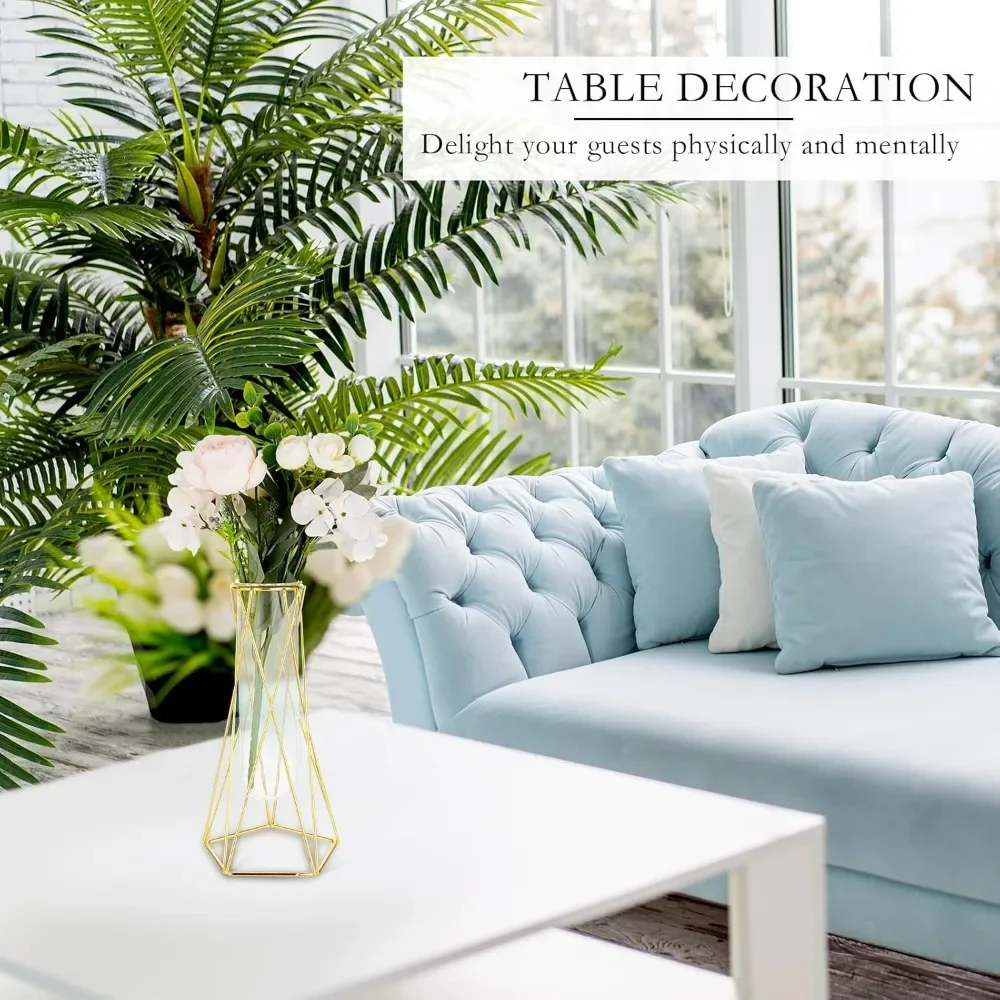 Elegant Design: our clear glass vases with sleek and modern geometric metal stands work well with a variety of decorative styles; This beautiful centerpiece will add a touch of sophistication to your room and leave a deep impression on your guests