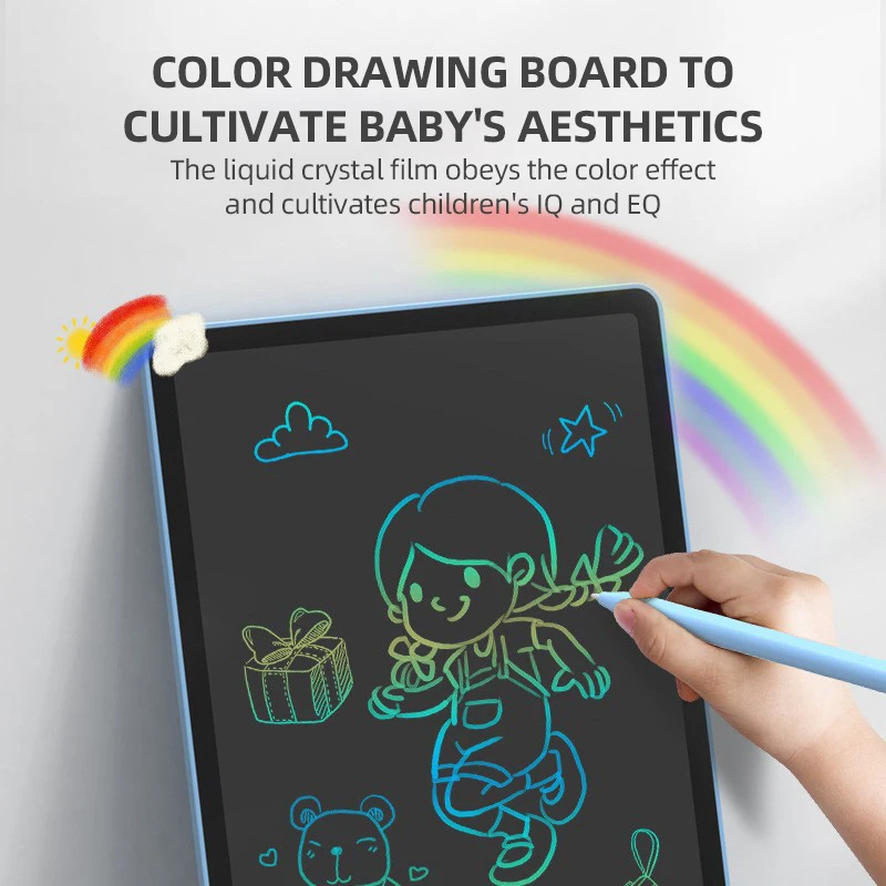 2.Derabika drawing board adopts the unique LCD pressure-sensitive technology, 50% brighter upgraded screen impresses colors. Rainbow colors will be shown more obvious under strong light and provide better visibility for toddlers doodling.