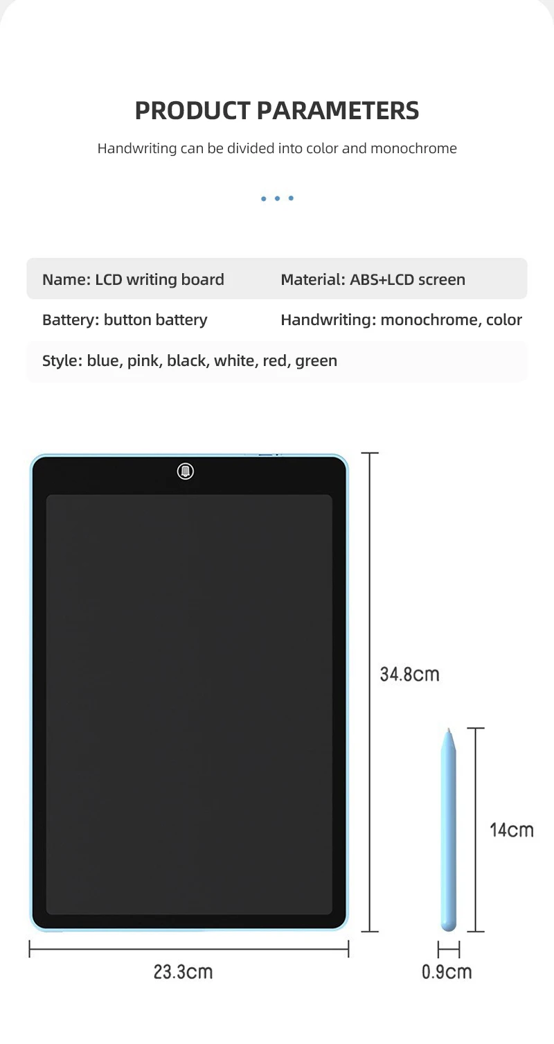 1.LCD writing tablet is the best gift for kids' birthday, Thanksgiving, Christmas, and any occasion. Every little doodler should have one! It can be used as a drawing board, notepad, memo board, office writing board, graphic aids, writing pad, and so on. It's a suitable educational learning toy for toddlers.