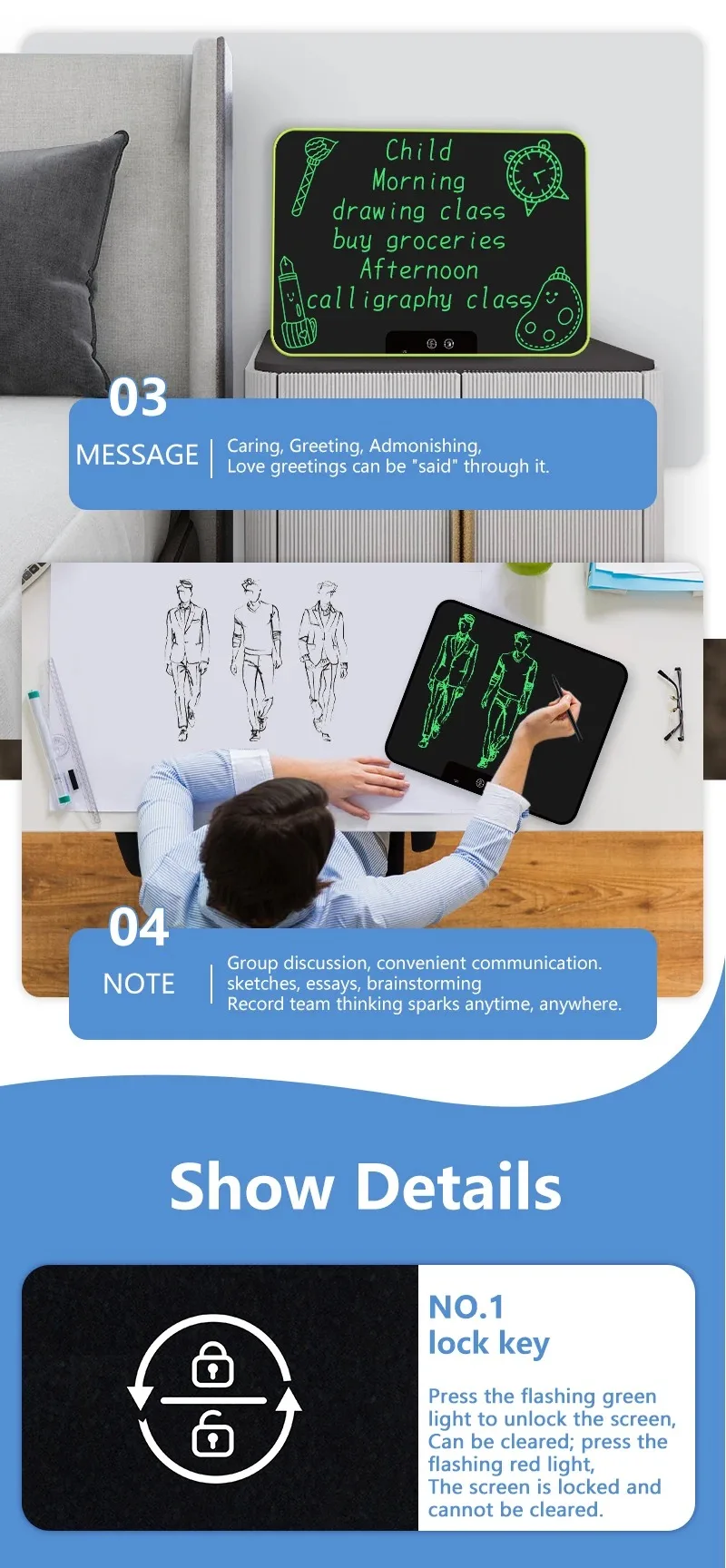 18” Rechargeable LCD Writing Tablet Electronic Drawing Board Doddle Board Educational Graphics Digital Tablets For Kids Gifts