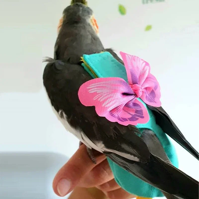 1pc Parrot Diaper with Bowtie Cute Colorful Fruit Floral for Pigeons Small Medium Large Pet Birds Flight Suit Clothes Washable