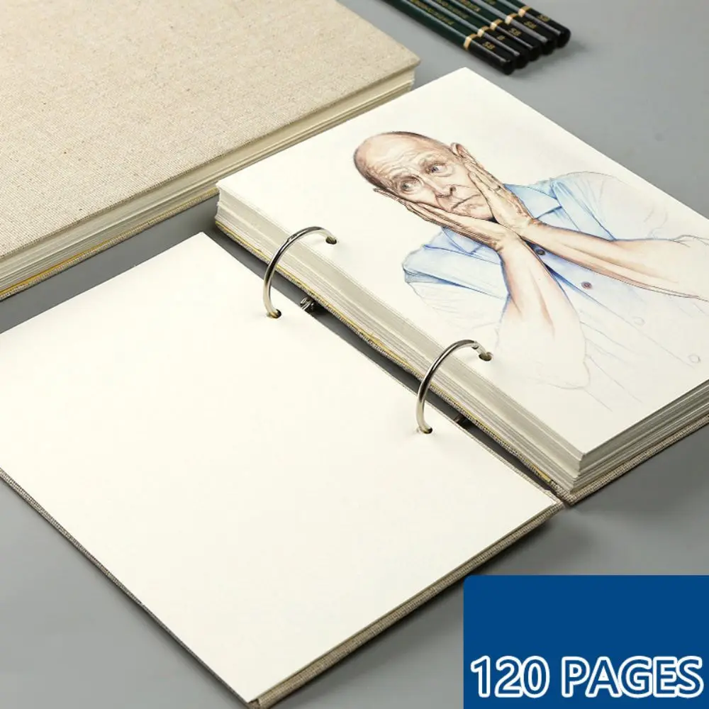 1pc Retro Spiral Sketchbook Linen Hardcover 120 Pages 160GSM Refillable Notebook for Art Drawing Stationery School Supplies