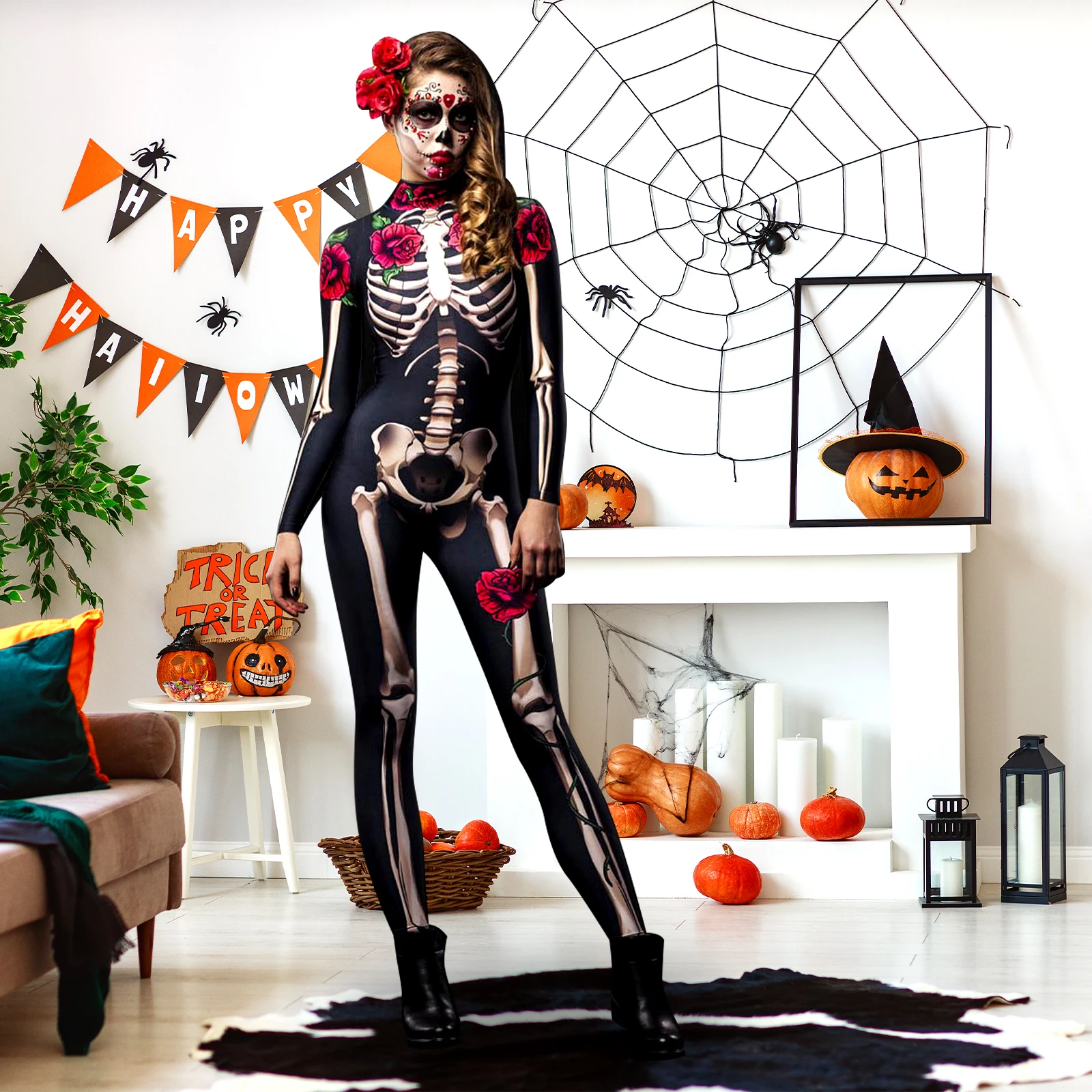 SPACIOUSLY SPOOKY: Our Skeleton Costume Jumpsuit for Halloween will have you and your girl feeling and looking your very best for any spooky occasion. Whether you want to wear it for a party or stay comfy while trick or treating, the body-hugging skull jumpsuit will definitely make you and your daughter the center of attention at a party.