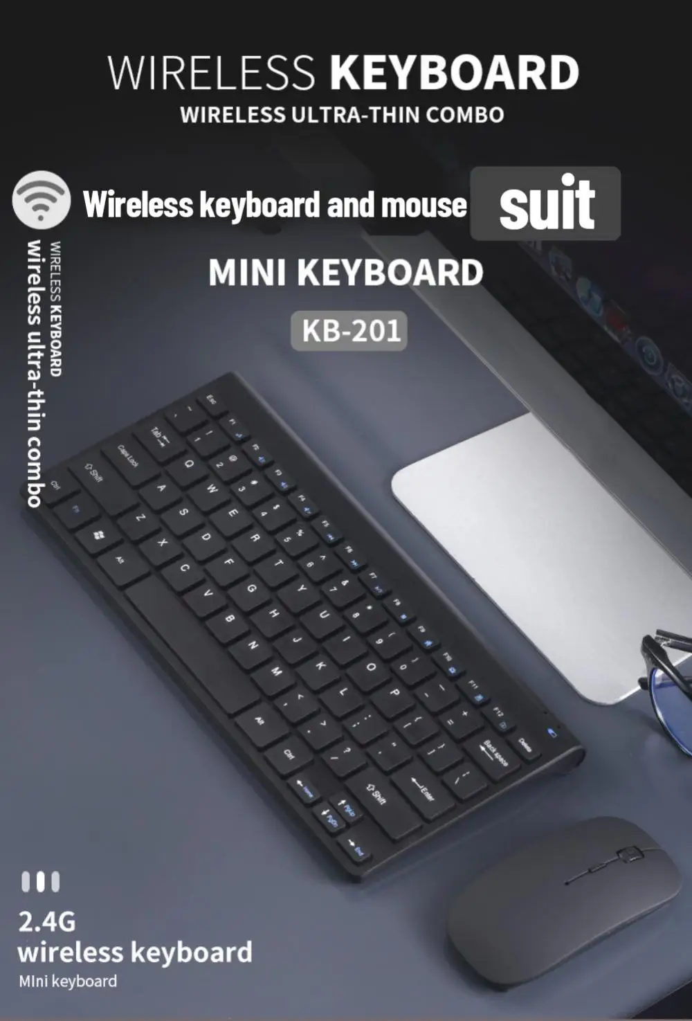 2.4G Wireless Keyboard And Mouse Suit USB2.0 Portable Slim Design Ergonomic Keyboard And Mice Noise Reduction For Laptop PC