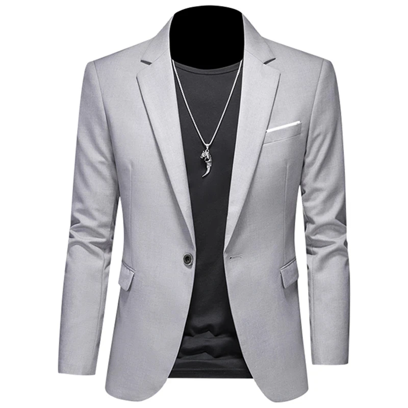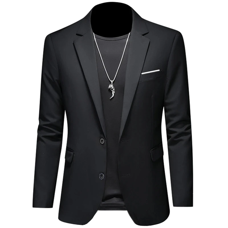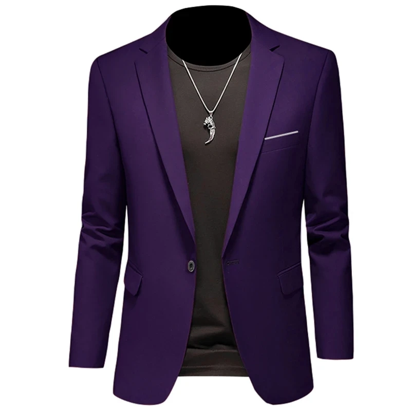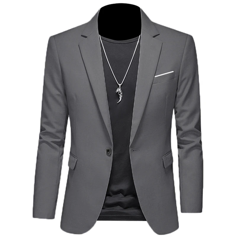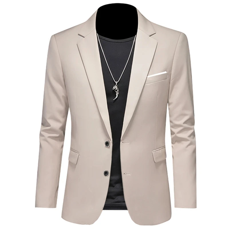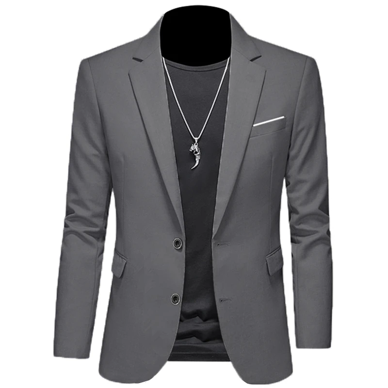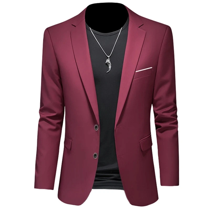 2023 Fashion New Men’s Casual Boutique Woolen Pure Color Business Slim Fit Suit Blazers Jacket Dress Coat