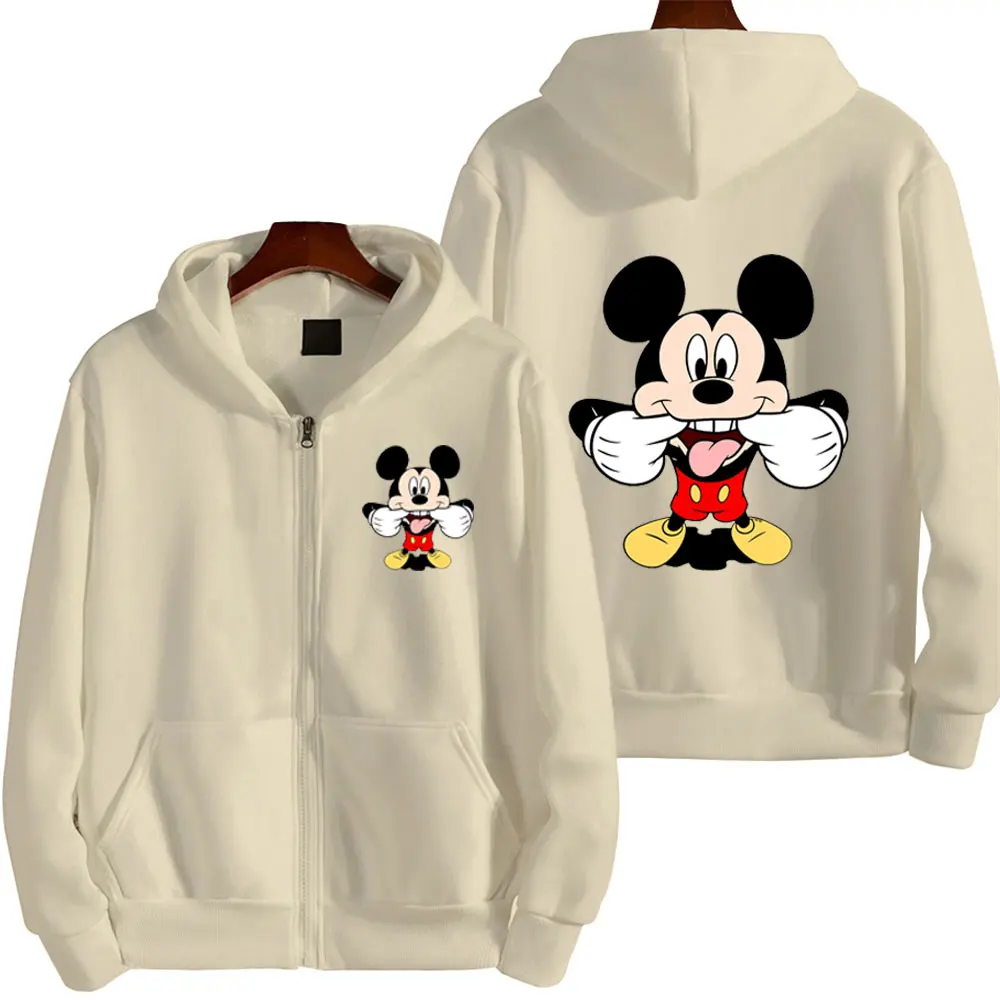 2024 Fall Clothing Women Disney Role Play Mickey Mouse Cartoon Zipper Hoodie Women Winter Coat Fleece Jacket Korean Clothing
