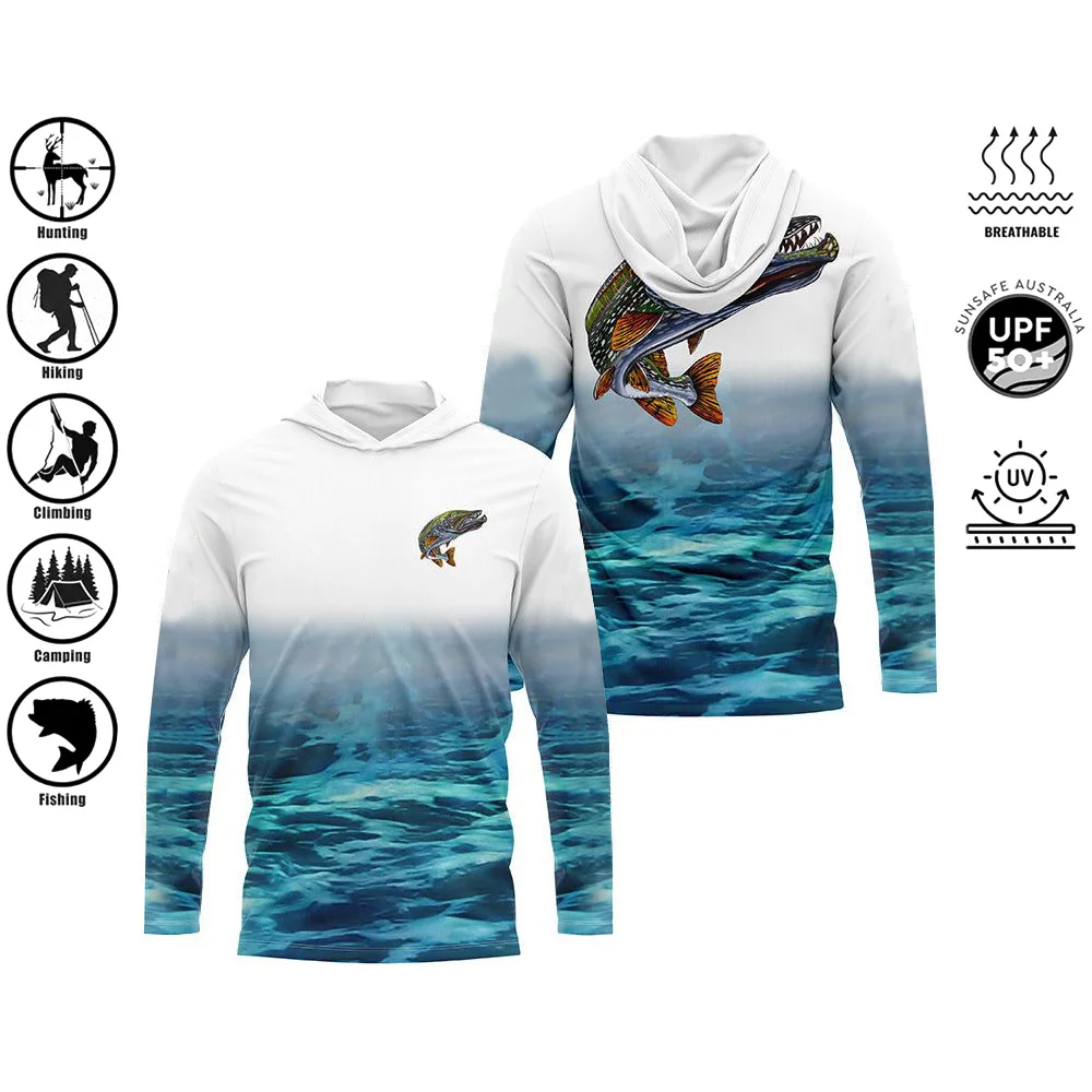 2024 Fishing Shirt Hoodie Men’s Long Sleeve Shirt UPF 50+Uv Protection Quick Dry Tops Outdoor 3D printing Fishing Shirts 4XL