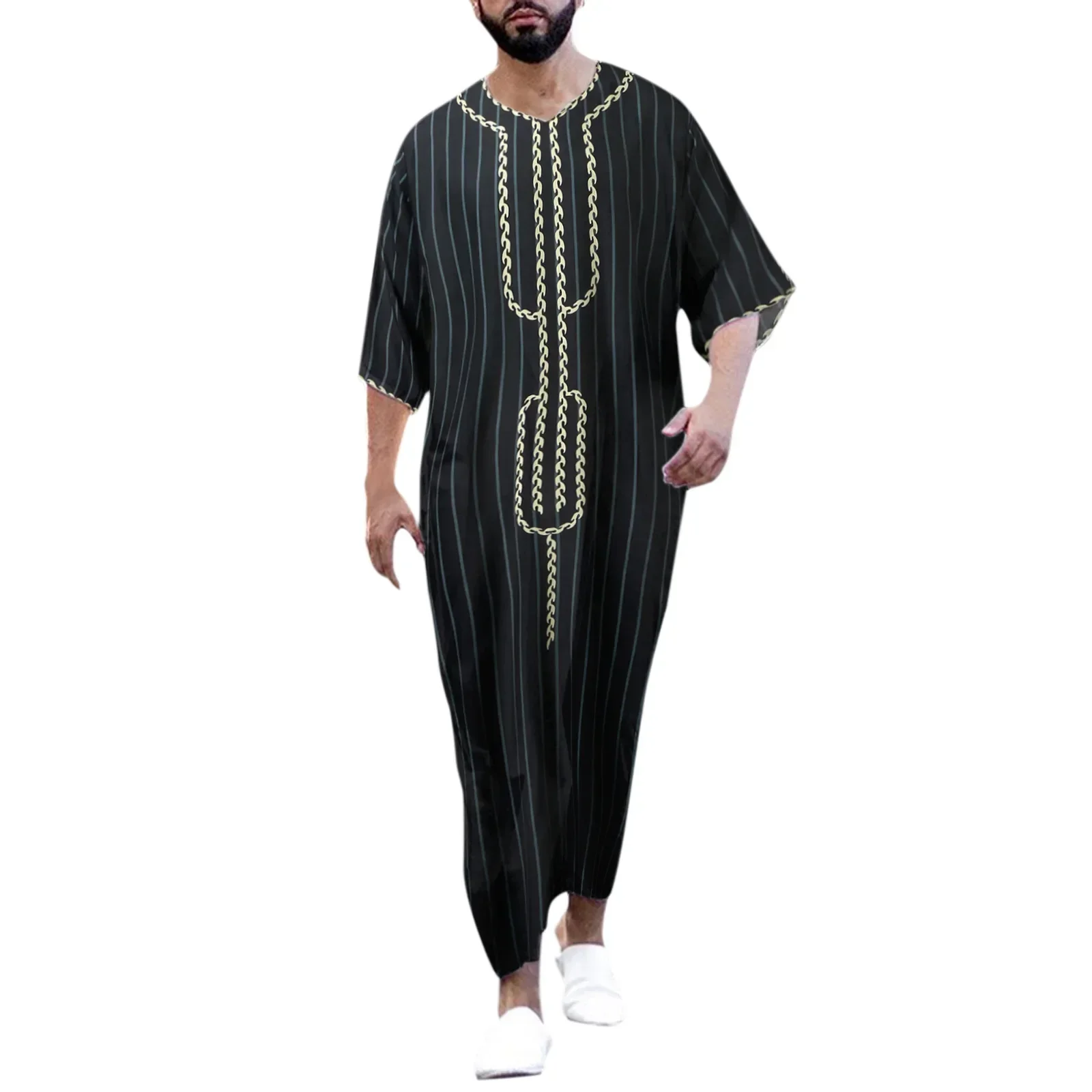 2024 Islam Men Clothing Kaftan Muslim Fashion Robe Embroidered Loose and Breathable V-neck Mid-sleeve Robe Man Muslim Dress Eid