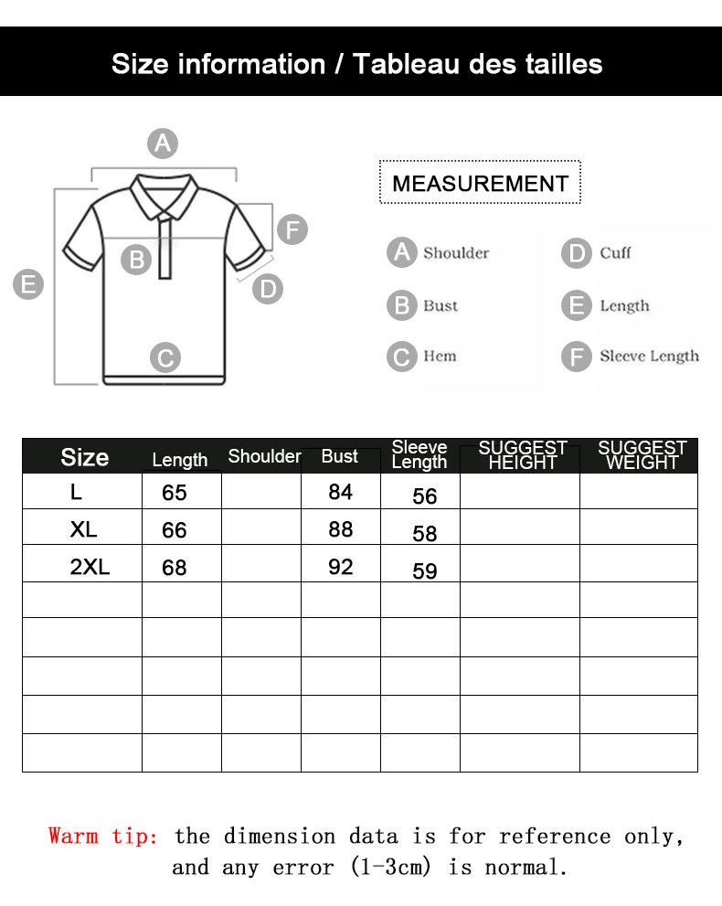 Specification: XL 2XL 3XL
