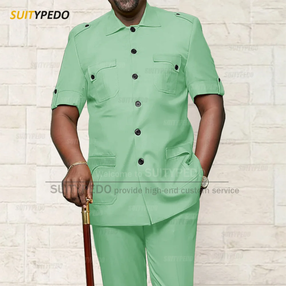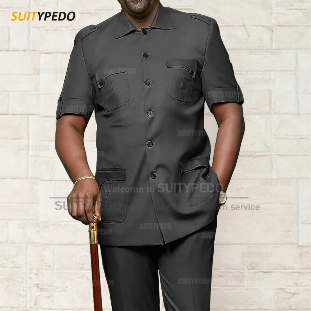 2024 New Men Suits African Fashion Blazer Pants Wedding Grooms Elegant Single Breasted Jacket Evening Party Formal Costume 2 Pcs