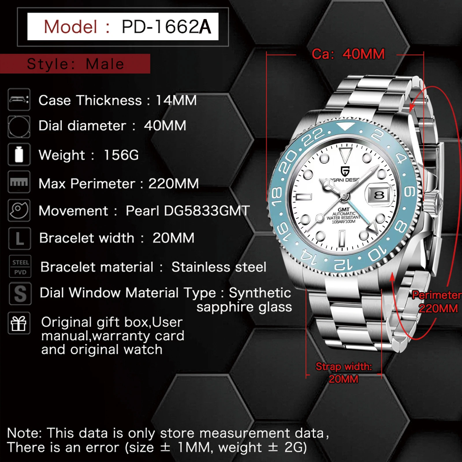 2024 New PAGANI DESIGN GMT 40mm Men Mechanical Watch Sapphire Glass Top Brand 100M Waterproof Watch Fashion Men reloj hombre
