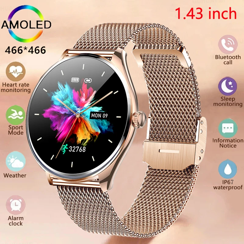 2024 New Ultra Thin Smart Watch Women 1.43″ AMOLED 466*466 HD Screen BT Call Smartwatch Ladies Sports Waterproof Watches Men