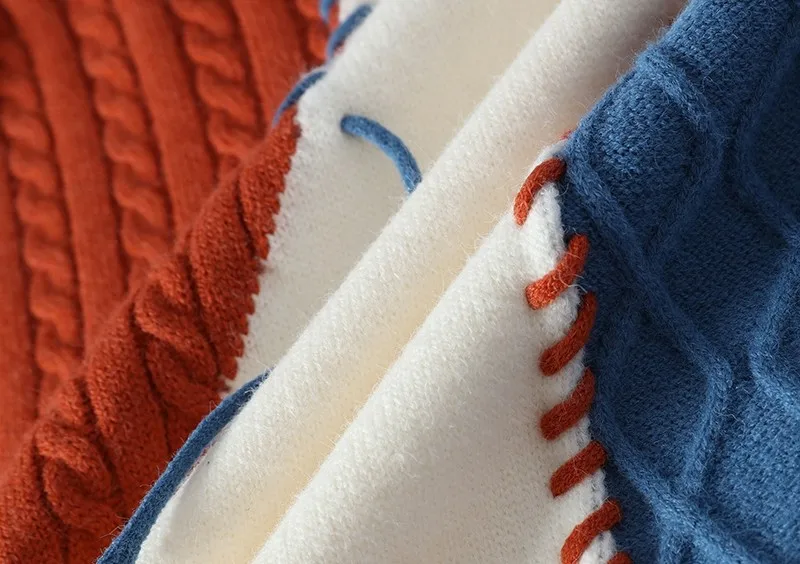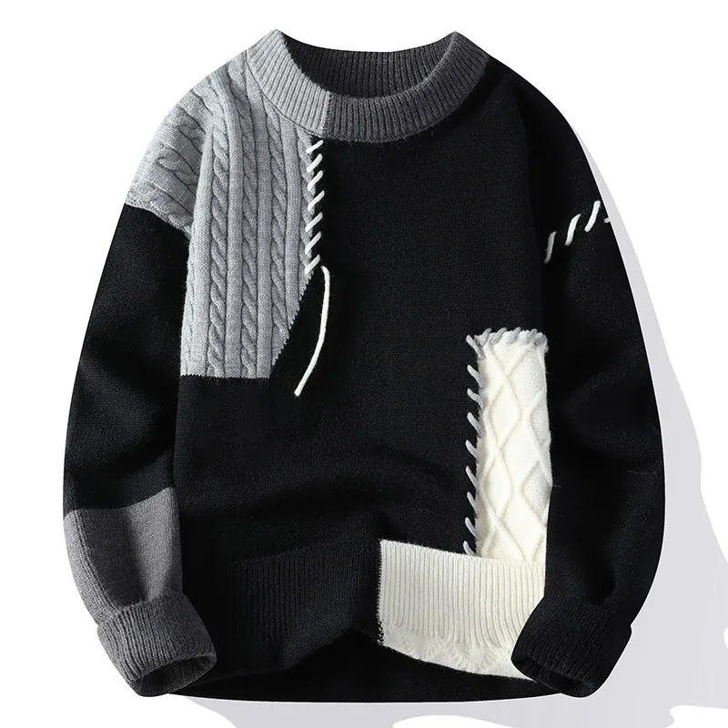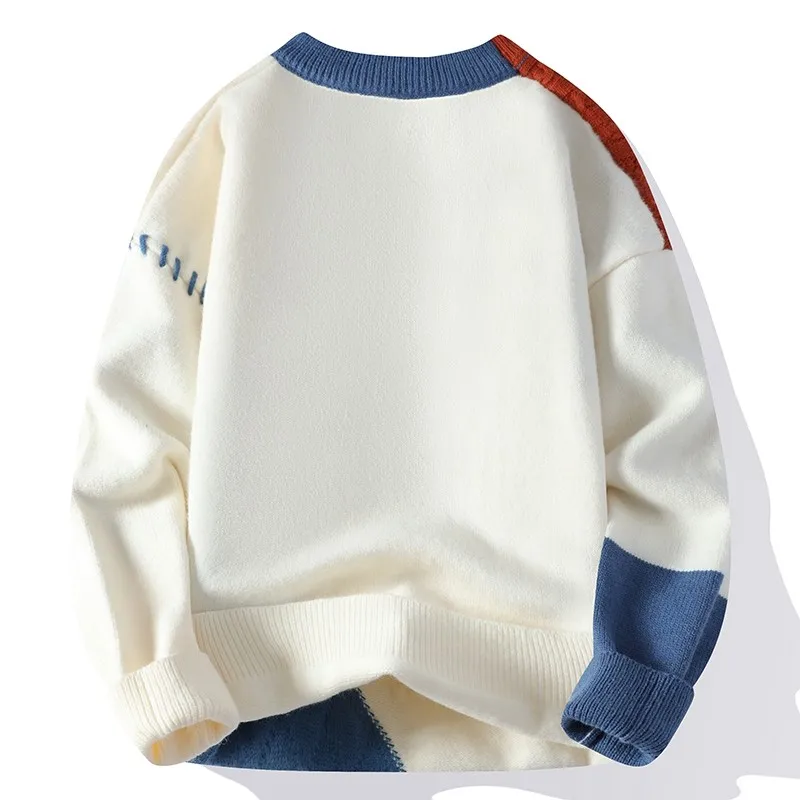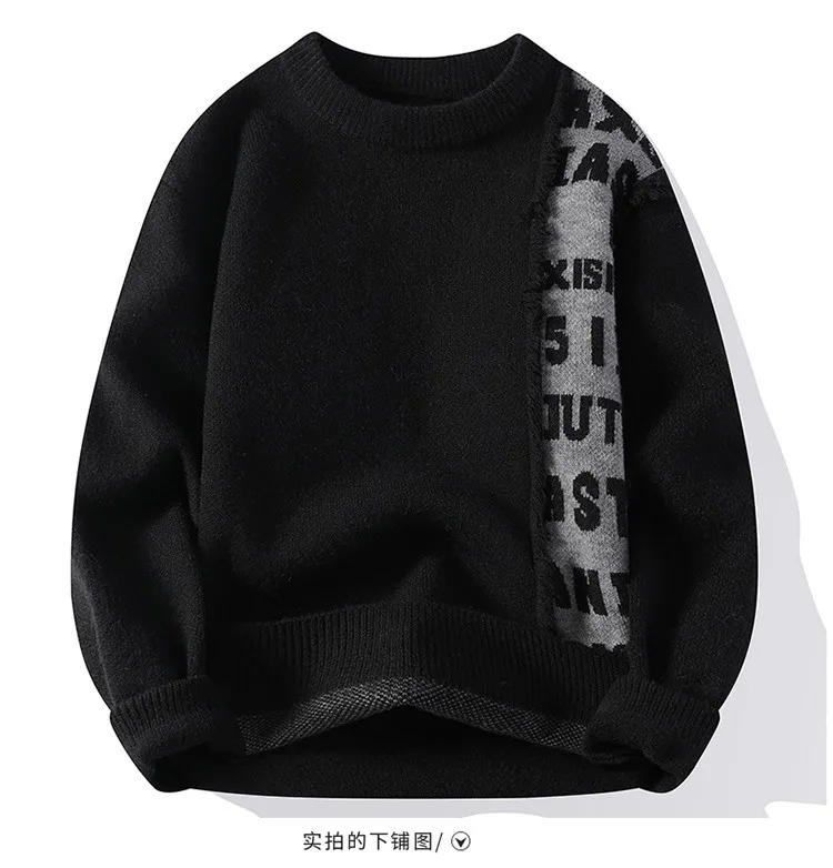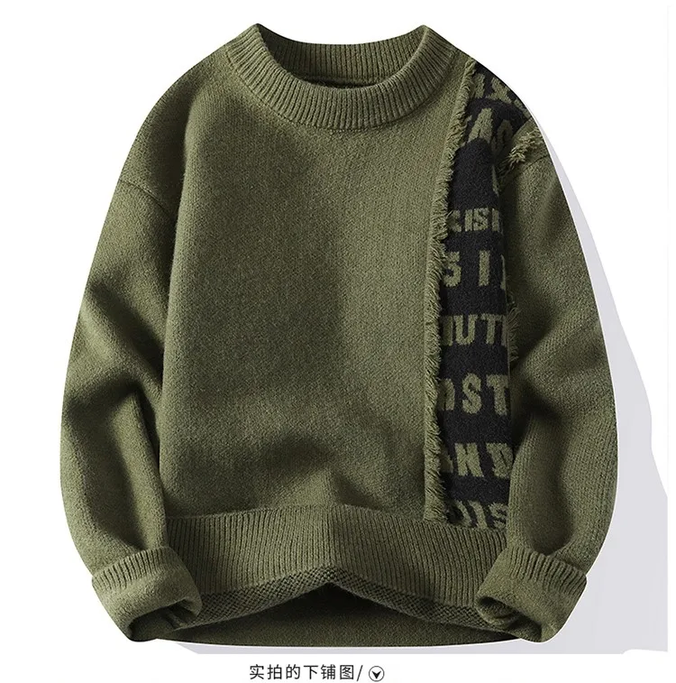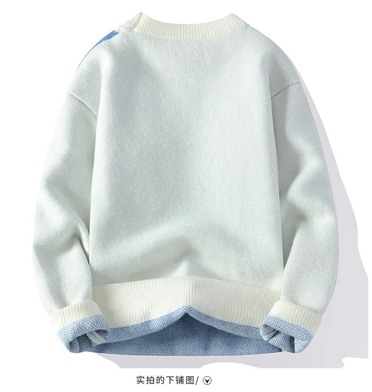 2024 Patchwork Knitted Sweater Trend High Street Autumn Winter Warm Men’s Tops Hip-hop Street Clothing Fishing Sports Pullover