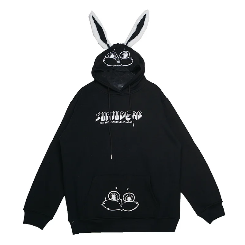 2024 Spring Autumn Couple Matching Cute Hoodie Plush Rabbit Long Ear Hooded Sweatshirt Women Kawaii Thicken Pocket Outwear