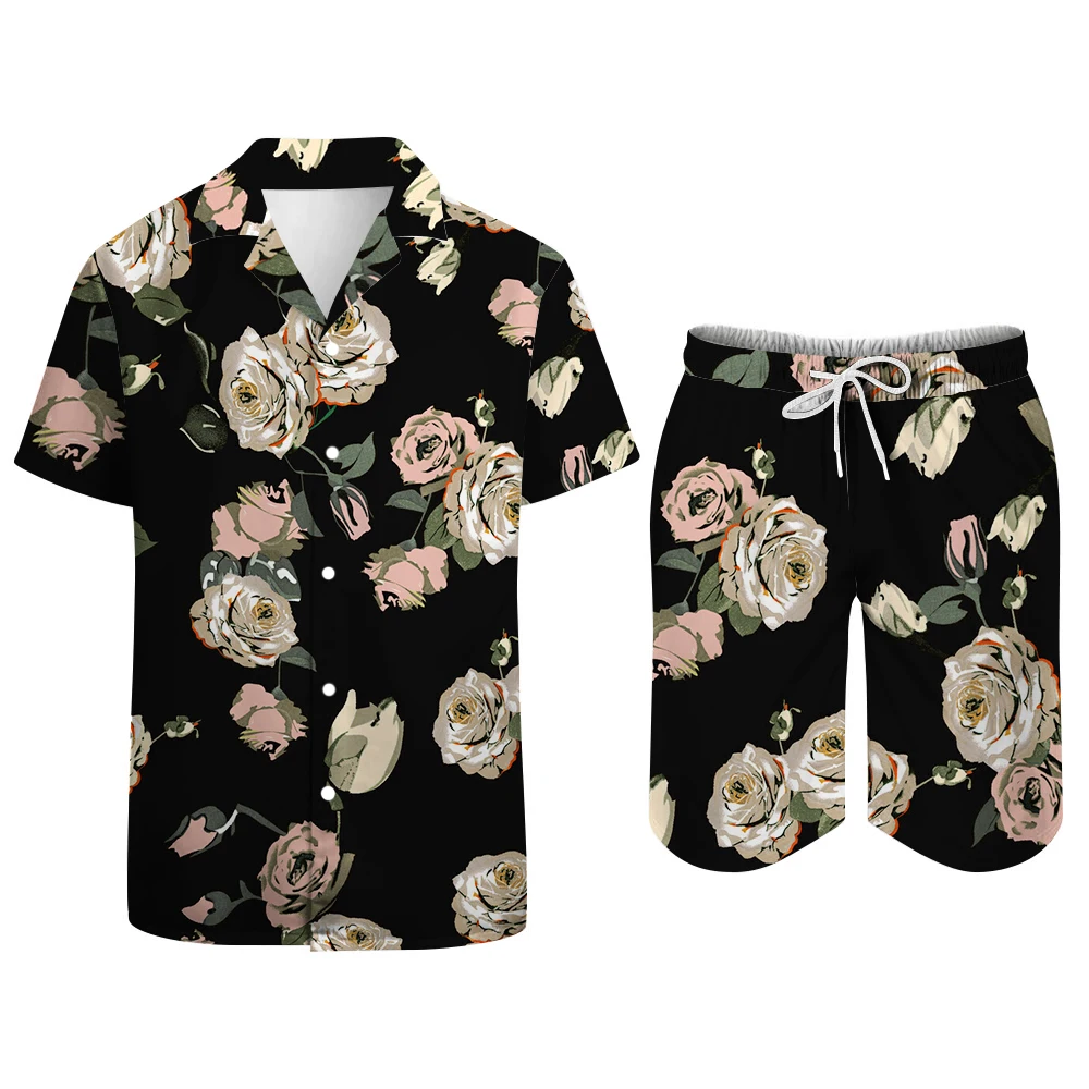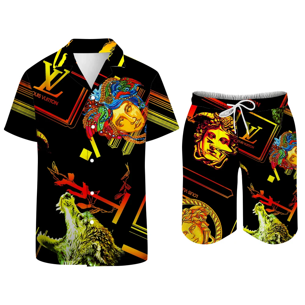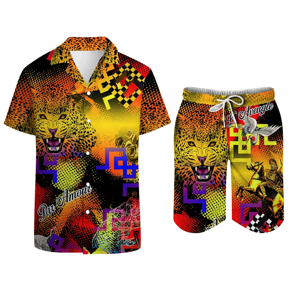 2024 Spring/Summer New Men’s Shirt Set Strange Deer External Fashion Store Classic Digital Print Cuban Collar Shirt Women’s Edit
