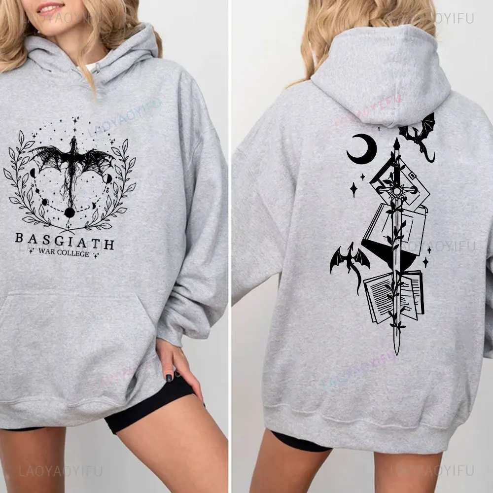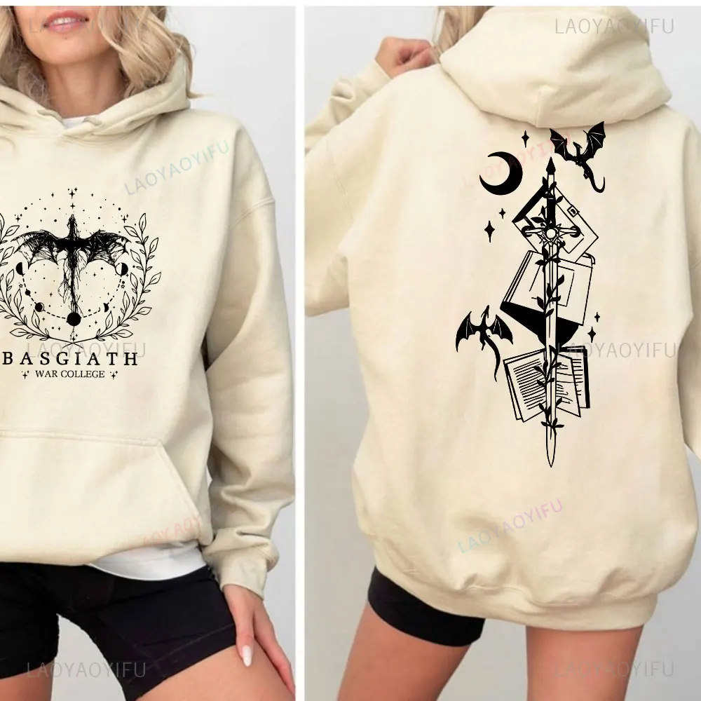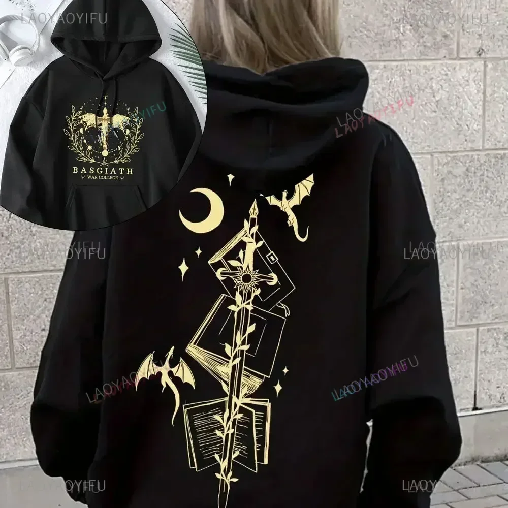 2024 Vintage Fourth Wing Hoodie Dragon Rider Print Basgiath War College Sweatshirt Women Fantasy Bookish Sweatshirts