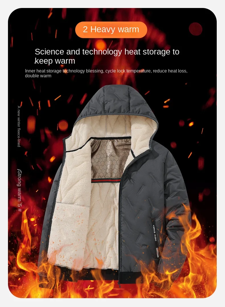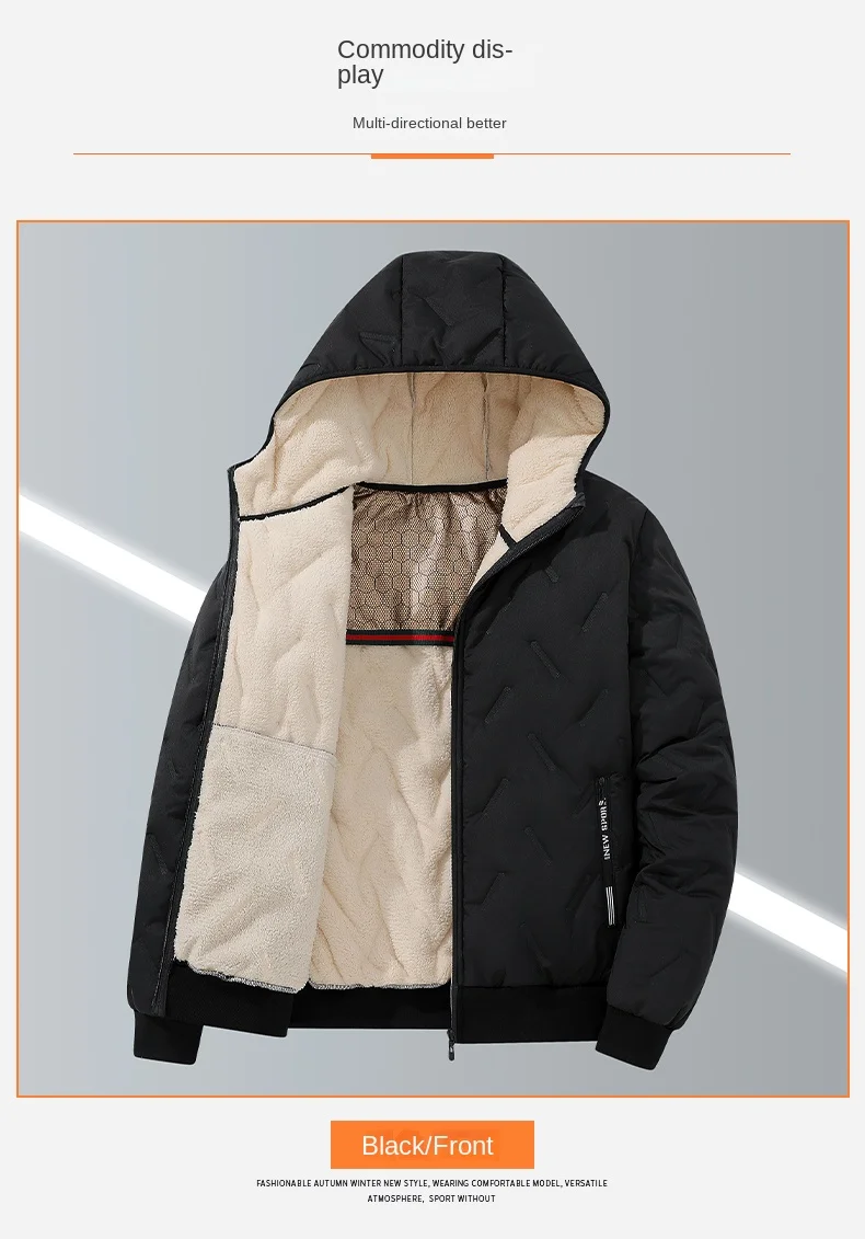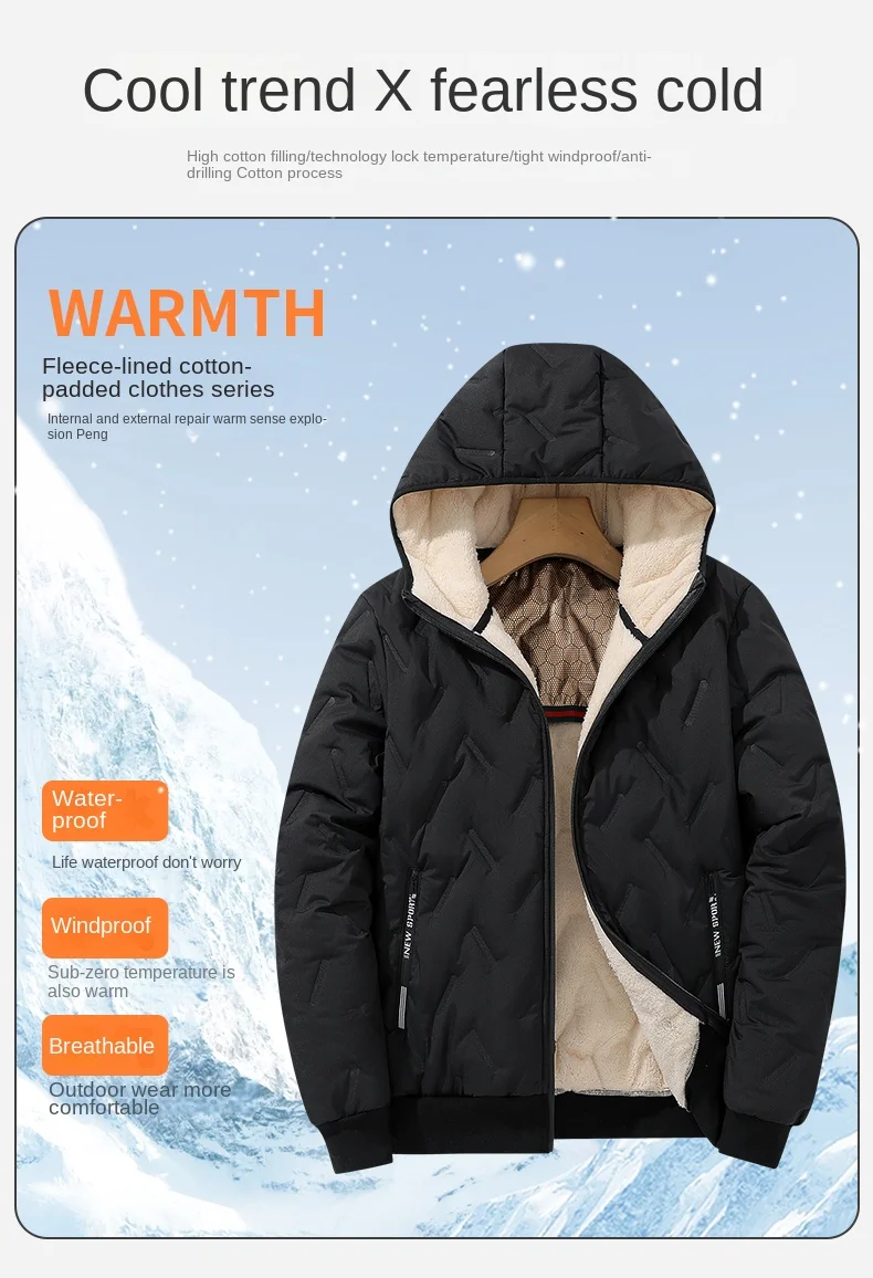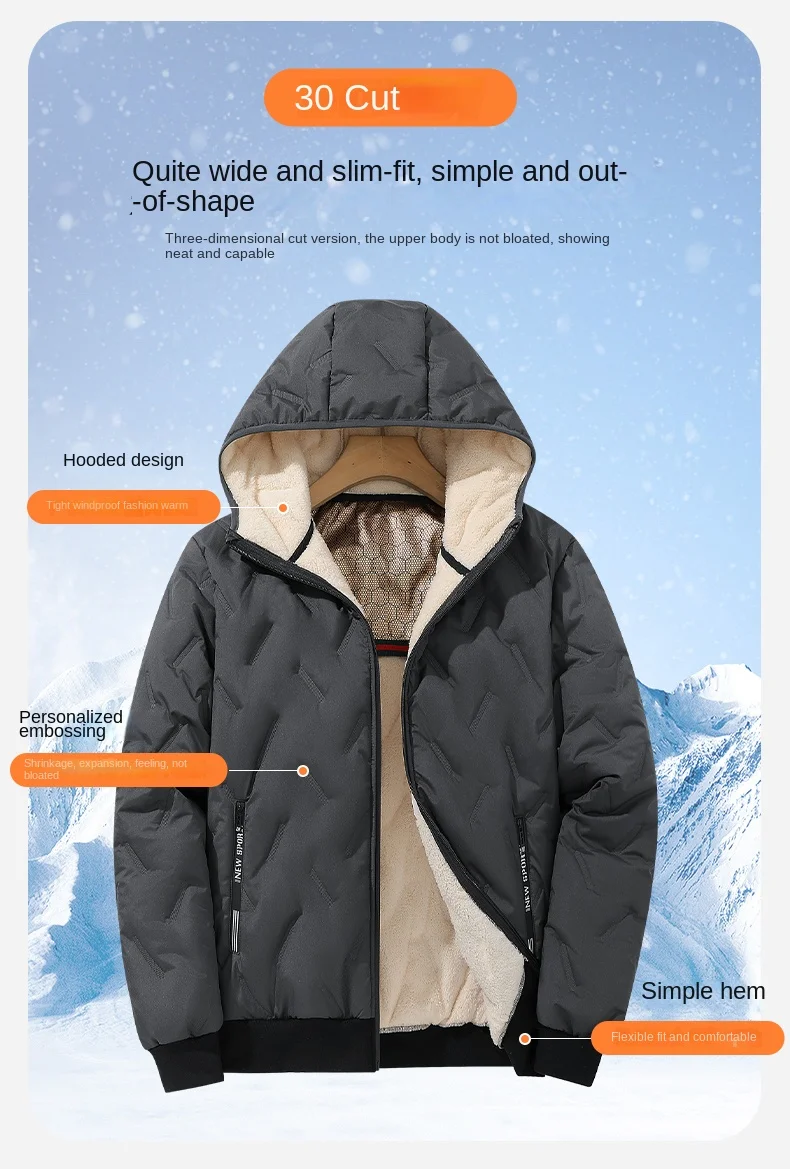 2024 Winter New Cotton Jacket Men’s Thickened Warm and Casual Anti Cold Imitation Lamb Fleece Hooded Work Jacket Men’s Top