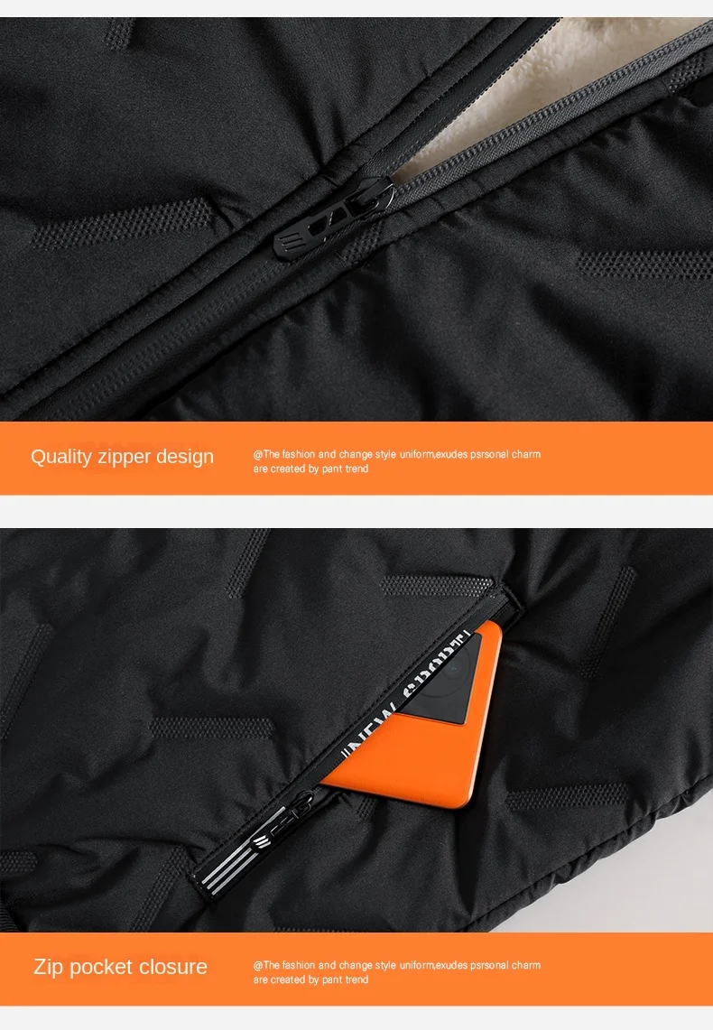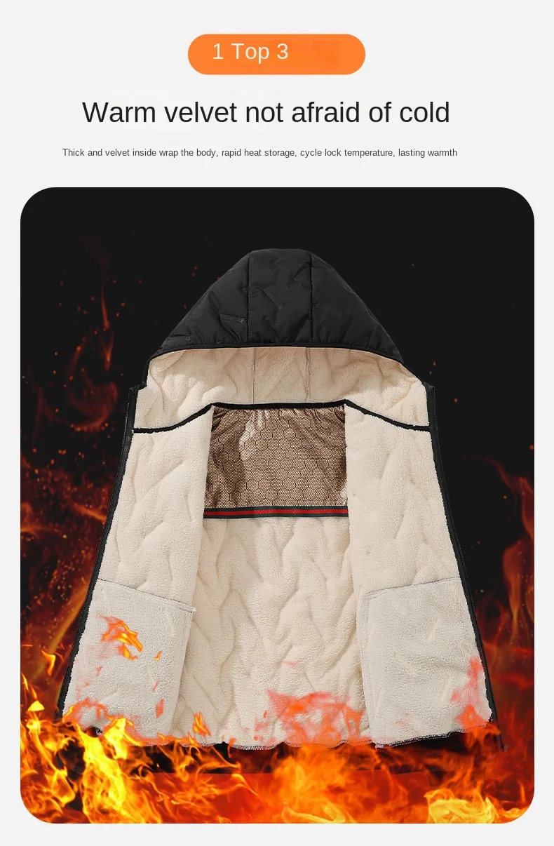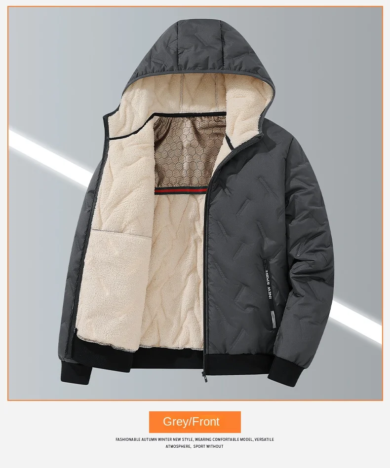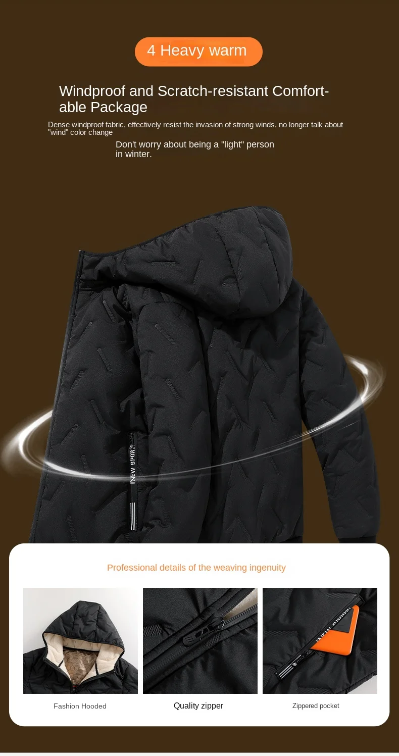 2024 Winter New Cotton Jacket Men’s Thickened Warm and Casual Anti Cold Imitation Lamb Fleece Hooded Work Jacket Men’s Top