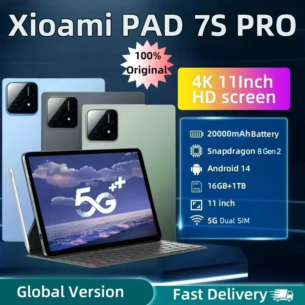 2025 Global Version Pad 7S Pro Original Android 14 Tablets 11inch 22GB+1TB 20000mAh 5G Dual SIM Bluetooth WiFi Tablet PC HD 4K
