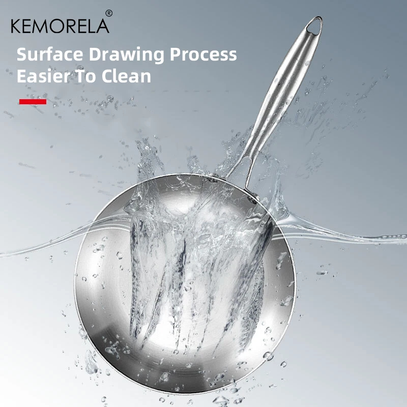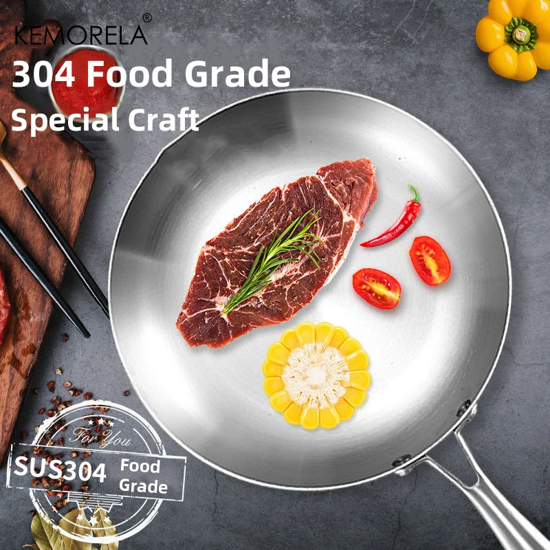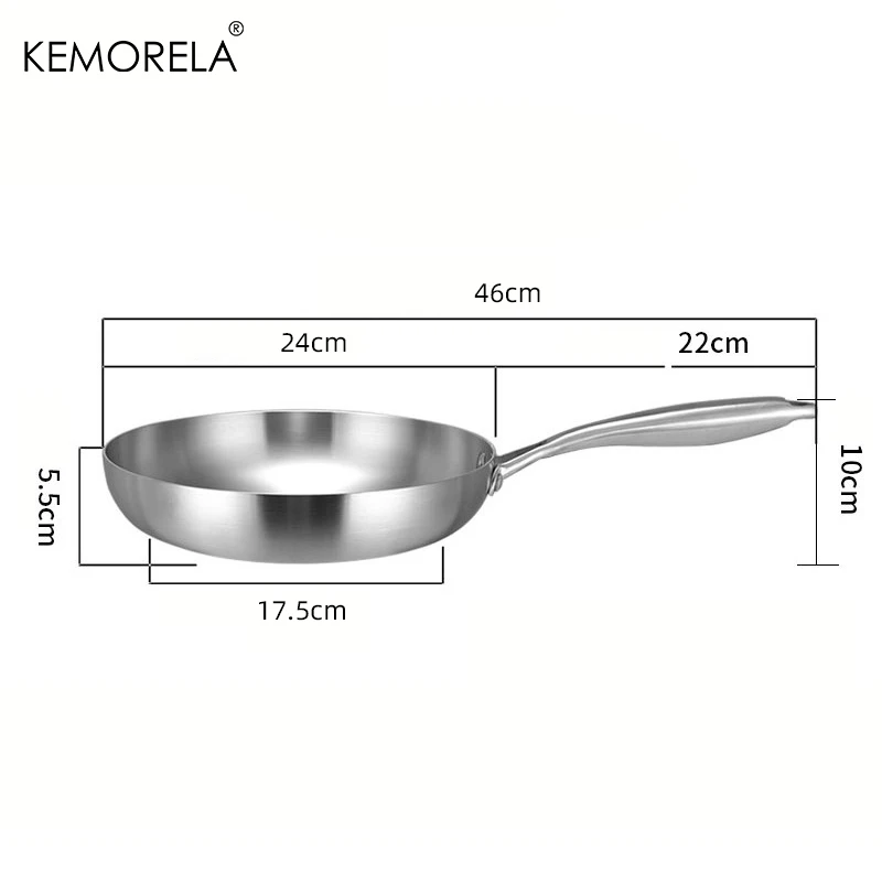 24CM Frying Pan 304 Stainless Steel 2MM Thick Wok Pan 5 Ply Steel Skillet,Professional Grade Pans for Cooking Cooking Pot