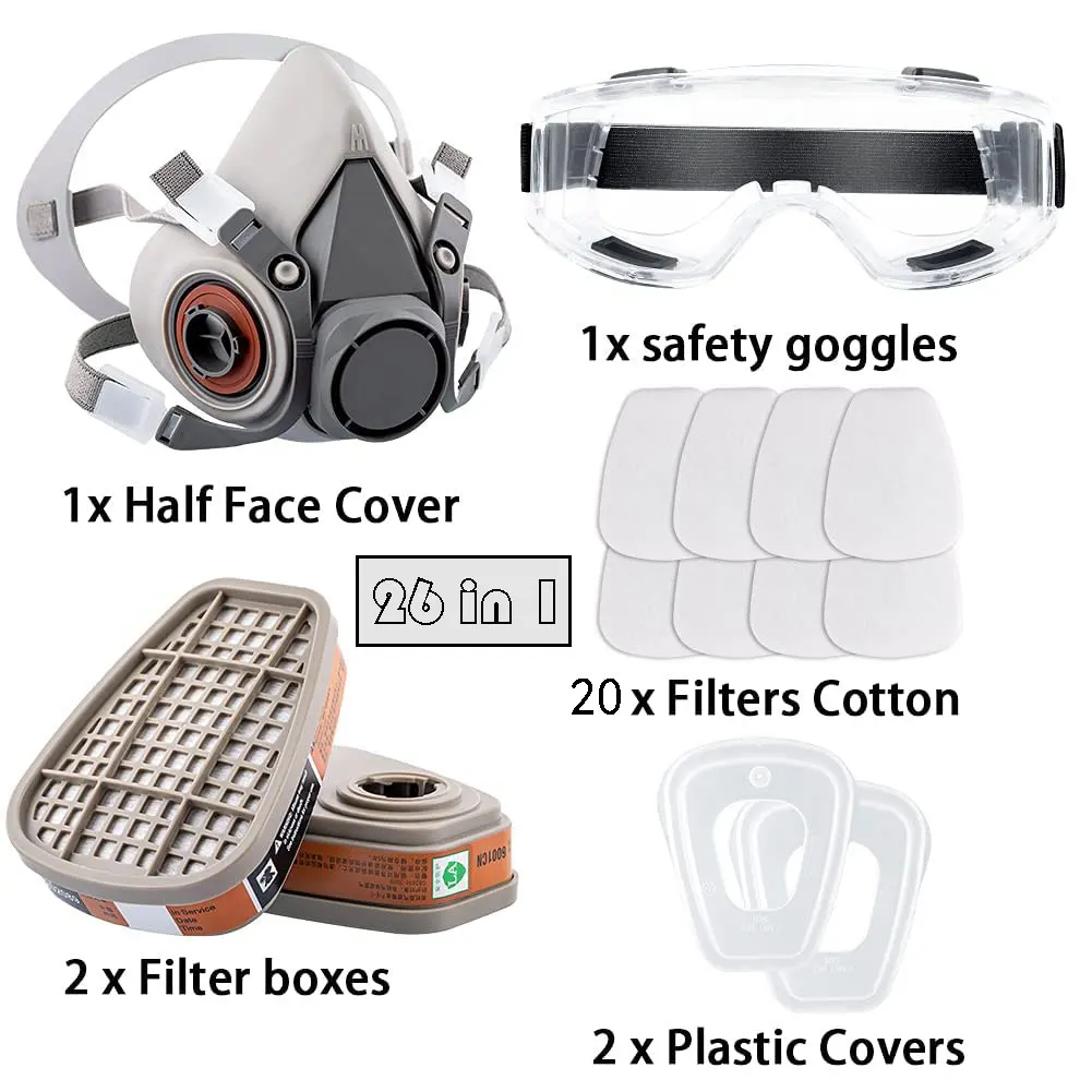 26in1 6200 Half Face Dust Gas Mask Respirator For Industrial Paint Spray Chemical Organic Vapor With Filters Protection
