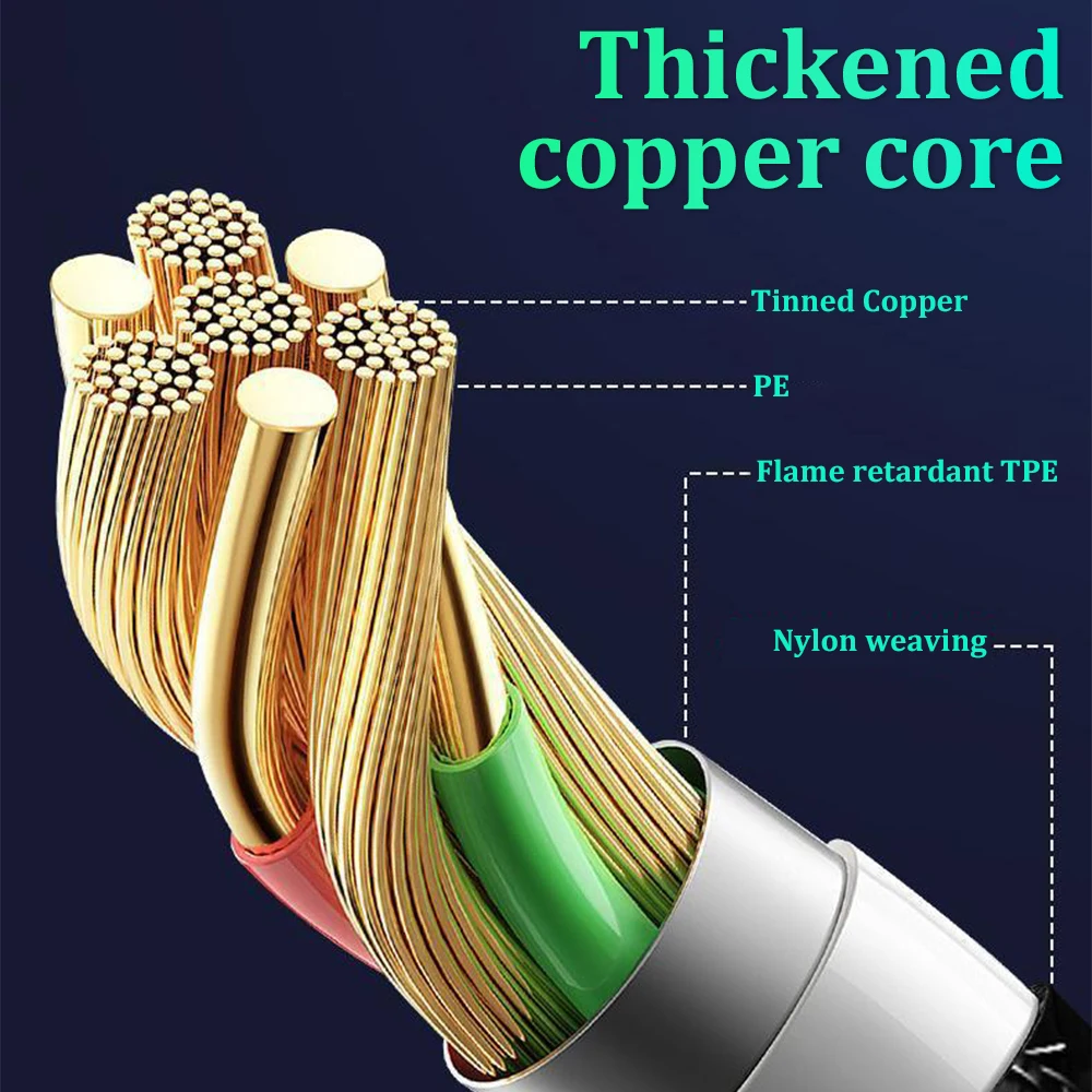 3. [Bold Copper Core] Bold Tinned Copper Core, Low Resistance Loss, High Speed Charging
