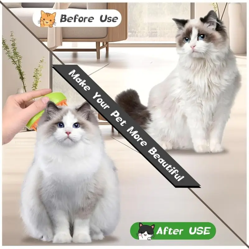 😺 3-IN-1 STEAM BRUSH — A great addition to your pet’s daily care routine, taking care of tangled and knotted fur and more. Whether you have a cat or a dog, this brush will keep your furry friend’s coat healthy and shiny.