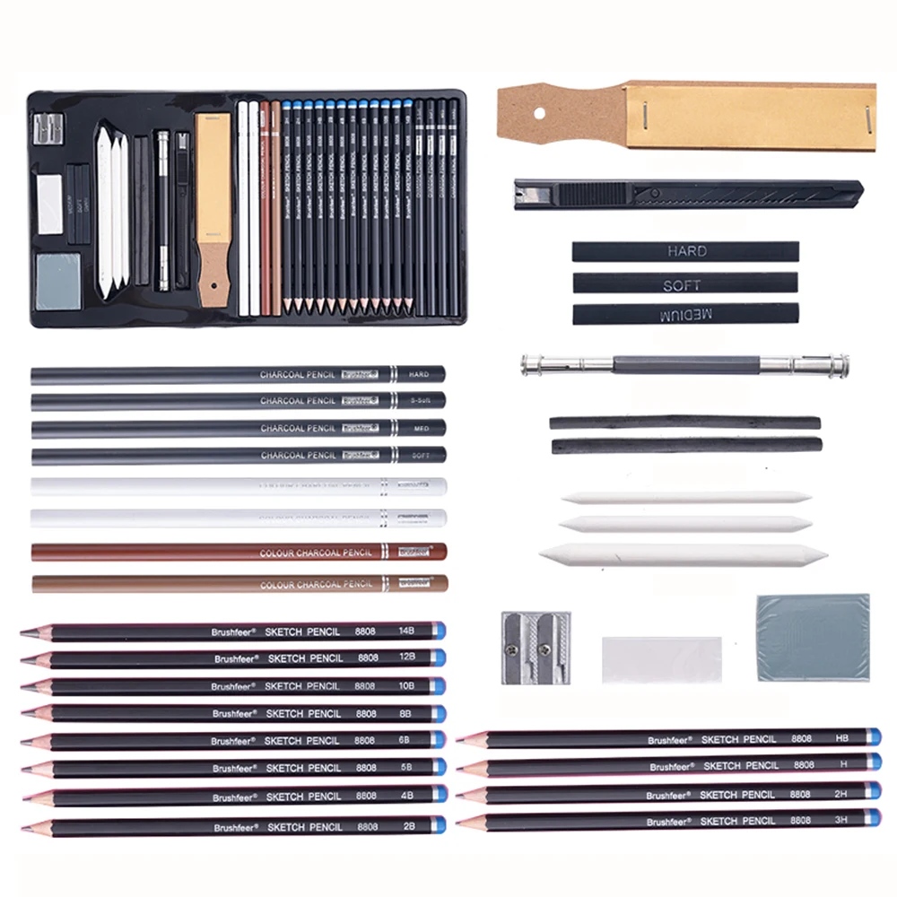 34pcs Artistic Drawing Set Colored charcoal pen Graphite Pencil sharpener Sketching penProfessional Art Supplies for Adults
