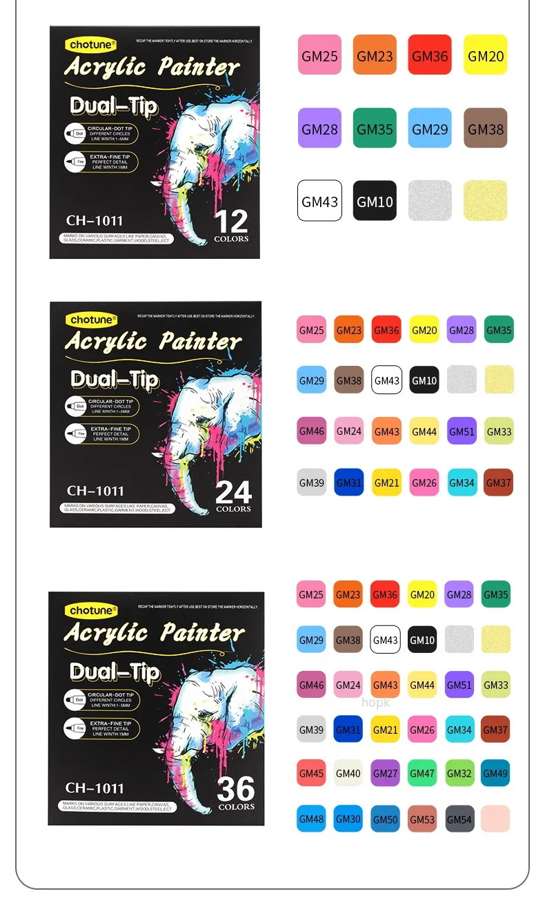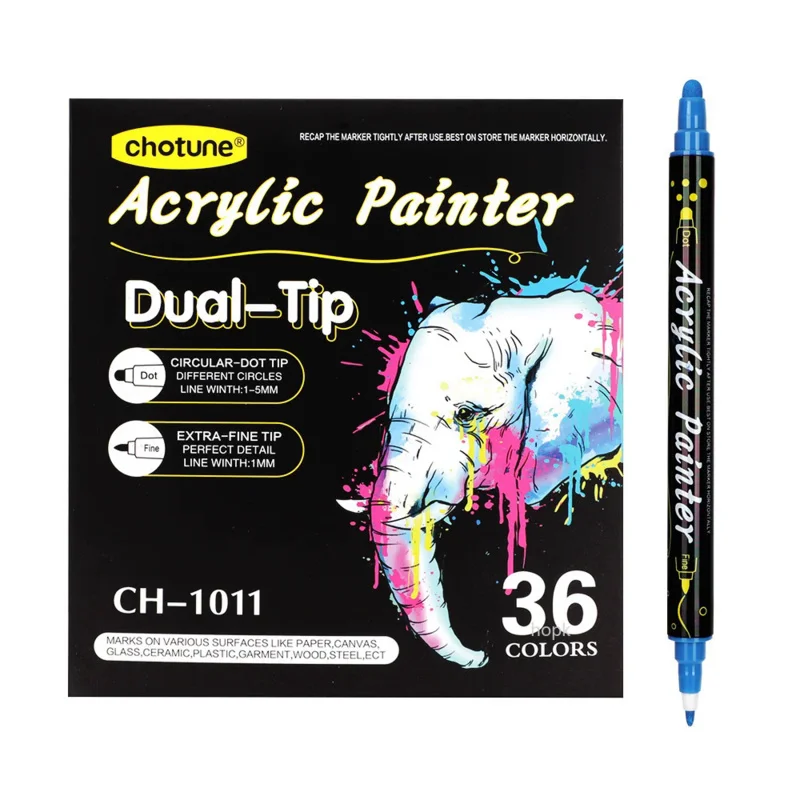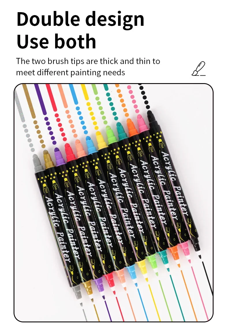 36 Colors Acrylic Gouache Paint Pens Dual Tip Markers For Wood Stone Rock Painting Glass Ceramic Surfaces DIY Crafts Art Making
