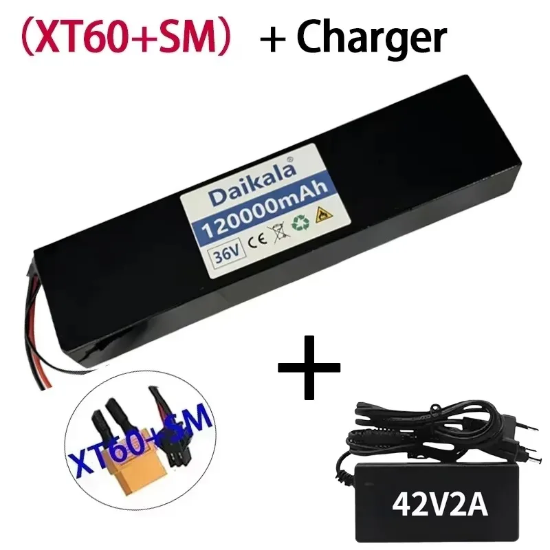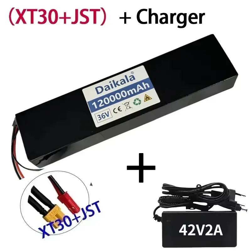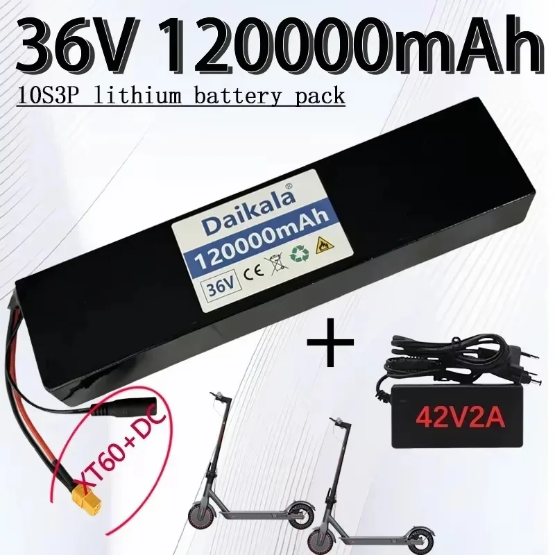 36V 10S3P 120000mAh lithium battery pack 18650, suitable for electric scooter bicycle XT60 DC connector, built-in BMS