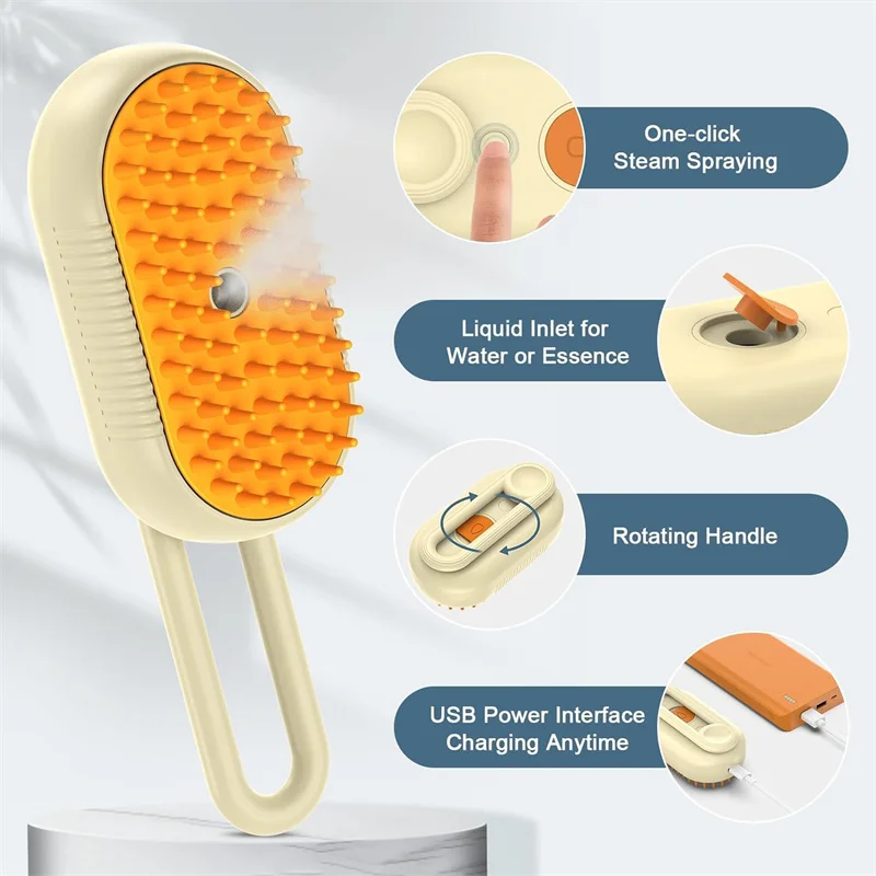 3in1 Pet Hair Cleaning Brush With Steam Pet Brush Dog Cat Steamy Brush Shedding Grooming, Spray Grooming Comb With Steam