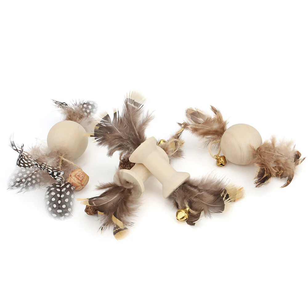 3pcs Random Cat Teaser toy Wood Feather Cat Toy Pet Supplies