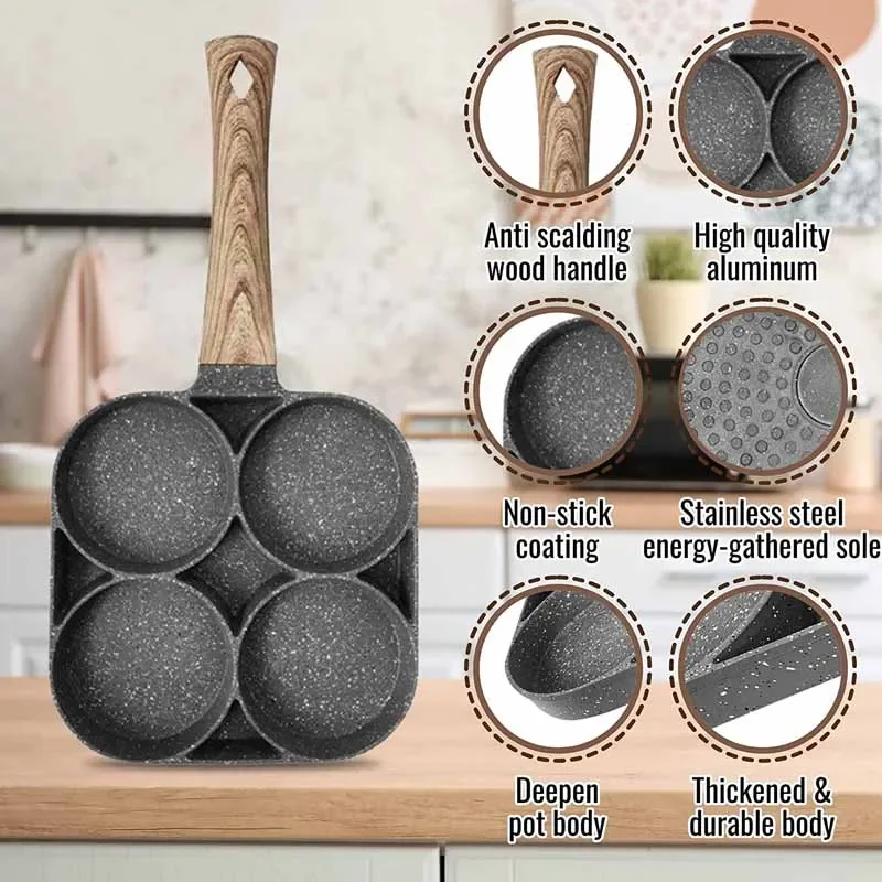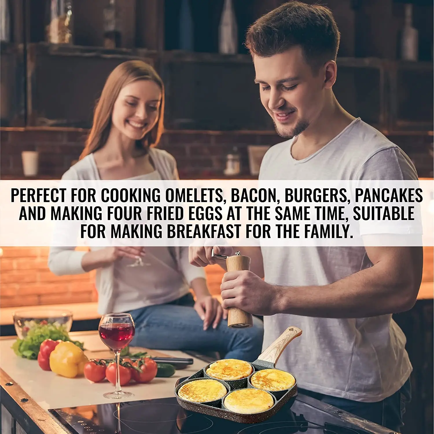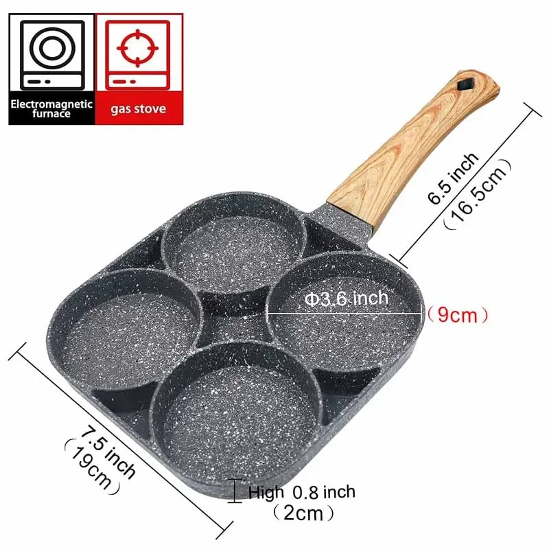 4-Hole Omelet Frying Pot Pan Non-stick Egg Pancake Steak Pan Cooking Egg Ham Pans Suitable for Gas Stove Induction Cooker