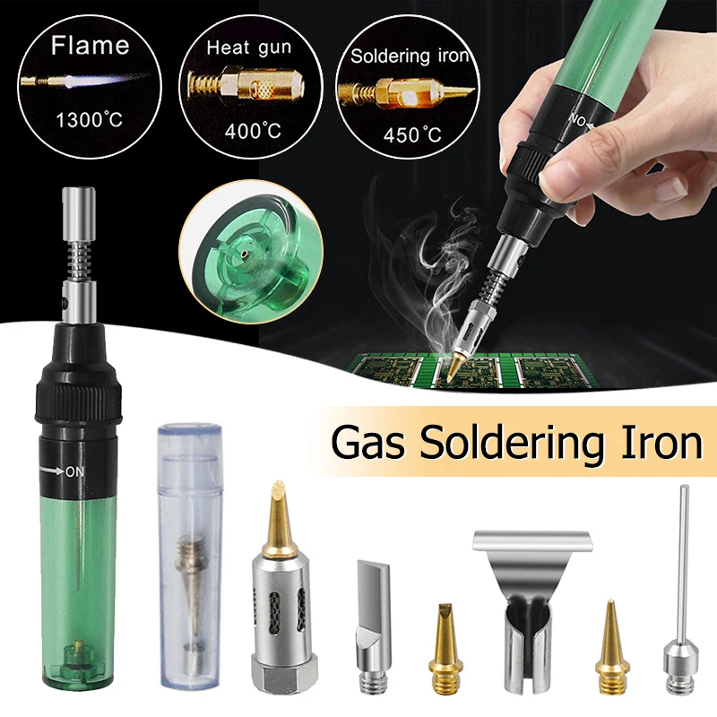 Feature: 1. High Quality: Gas Soldering Iron Pen has fine workmanship, smooth and delicate appearance, sturdy and durable, long life, excellent quality, and can be used for a long time. 2. Portable: The gas soldering iron is small in size, light in weight, easy to carry, pocket-sized, lightweight and convenient, I believe it can bring convenience to your life. 3. Easy to Maintain and Replenish: It uses widely available butane gas, 100% brand new high quality, reliable and safe quality. 4. Application: The soldering pen will melt silver and gold solder, it can be used as a mini torch or a hot air blower, with stable performance and strong practicability. 5. Suitable: It is very suitable for precisely welding electronics, instruments or circuits and other items to the computer motherboard, with a wide range of functions and obvious effects. Specification: Origin: Mainland China Filling capacity: 8ML Material: Main body: Plastic. Solder tip: Metal Packaging: Card insert packaging (192 * 80 * 25mm) Temperature: Flame temperature 1300 ℃ (adjustable) Soldering iron temperature 450 ℃ (adjustable) Fuel used: Pure butane GAS (this type of gas soldering iron is not equipped with automatic ignition, and it can only be ignited with a lighter.) Gas soldering iron head accessories: 5-piece set (one set includes: sharp, double inclined head, horseshoe, knife, needle, weight 10g/set, plastic bag packaging.) 6-piece set universal (one set includes: 1 set of heating element, needle type, knife type, pointed type, double inclined head, hot air blade head. The weight is 20g/set, packed in plastic bag.) Gas Filling: 1. Fill with gas, and make sure the switch is turned off at OFF, then supplement. 2. Guide the gas tank into the air hole, and press down to inflate. 3. After about 10 seconds, gas filling can be completed. Wait a few minutes until the gas is stable before use. 4. If there is a hissing air out sound at the tail after the gas is injected, it can be eliminated by slightly pressing the pen tip into the air inlet. Ignition: 1. Replace the soldering head 2. Push the switch to the ON position and hear a “hissing” sound 3. Push the electronic switch to ignite. 4. Burn for 3 minutes after ignition, and the soldering iron will continue to heat when the fire is extinguished. 5. Adjust the flame size; 6. The temperature of this product is as high as 1300 ℃ (the temperature of the soldering iron is 450 ℃). Pay attention to safety when using it. After using it, turn the switch to the OFF position. 7. When using the gas soldering iron, please pay special attention to wait until the flame is completely eliminated and the objects inside the soldering iron become red, so as to extend the life of the soldering iron head. Precautions: 1. Replace the connector after cooling or replace it in advance. 2. The iron head in use is hot and hot. Please do not touch it with your hands. 3. The adjusting button can control the gas output and temperature, usually in the middle position. 4. After use, store it after cooling, and do not place it in high temperature or direct sunlight. 5. It is not suitable for children to use, and should be placed properly when collecting. 6. Please use high-quality canned gas to fill, and keep away from the fire source when filling. 7. It is necessary to clean the nozzle frequently because of the gas or slag. 8. When cleaning, the nozzle can be pressed on the gas outlet of the gas tank to achieve cleaning effect. Note: