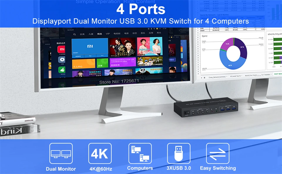 | Video Resolution | 4K HDMI DP KVM Switch 4 Computer 2 monitor |