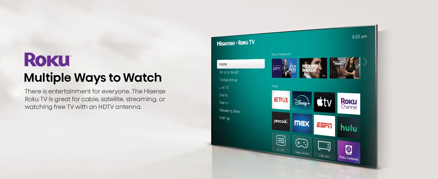 Claim your spot on the sofa! The A4NR Series smart TV from Hisense is designed for every binge watcher. It comes with built-in Wi-Fi and a Roku™ TV for easy and fast searching. With a Full HD high-definition picture, surround sound and an easy-to-use remote, there are so many reasons to love this model.
