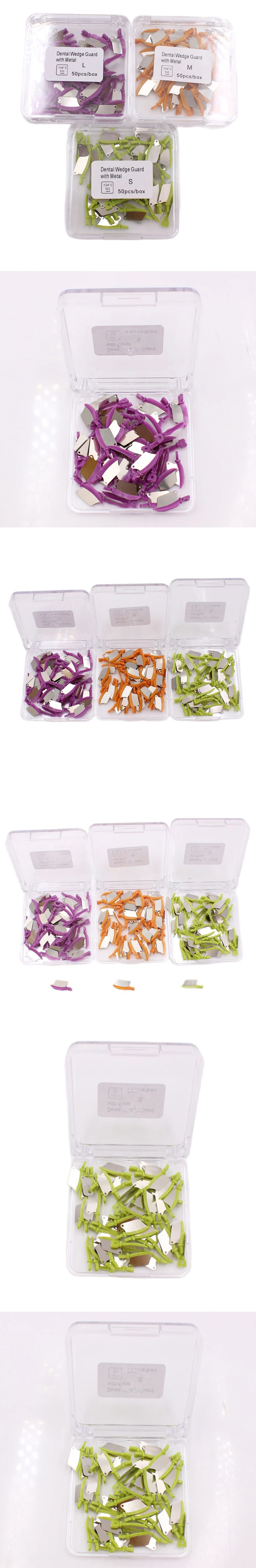 50Pcs/Box Dental Prime Teeth Interproximal Plastic Fender Wedges with Protection Steel Matrix Gingiva Wedge Blades Guard Metal