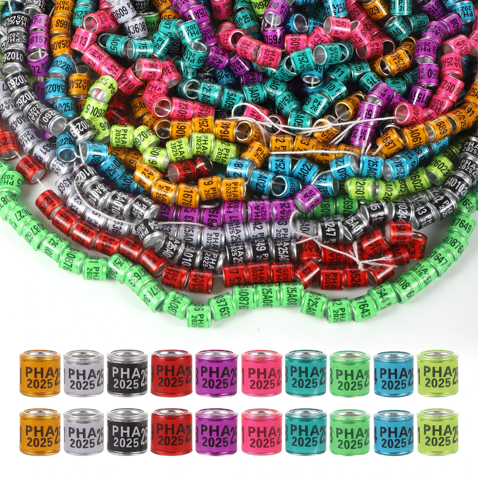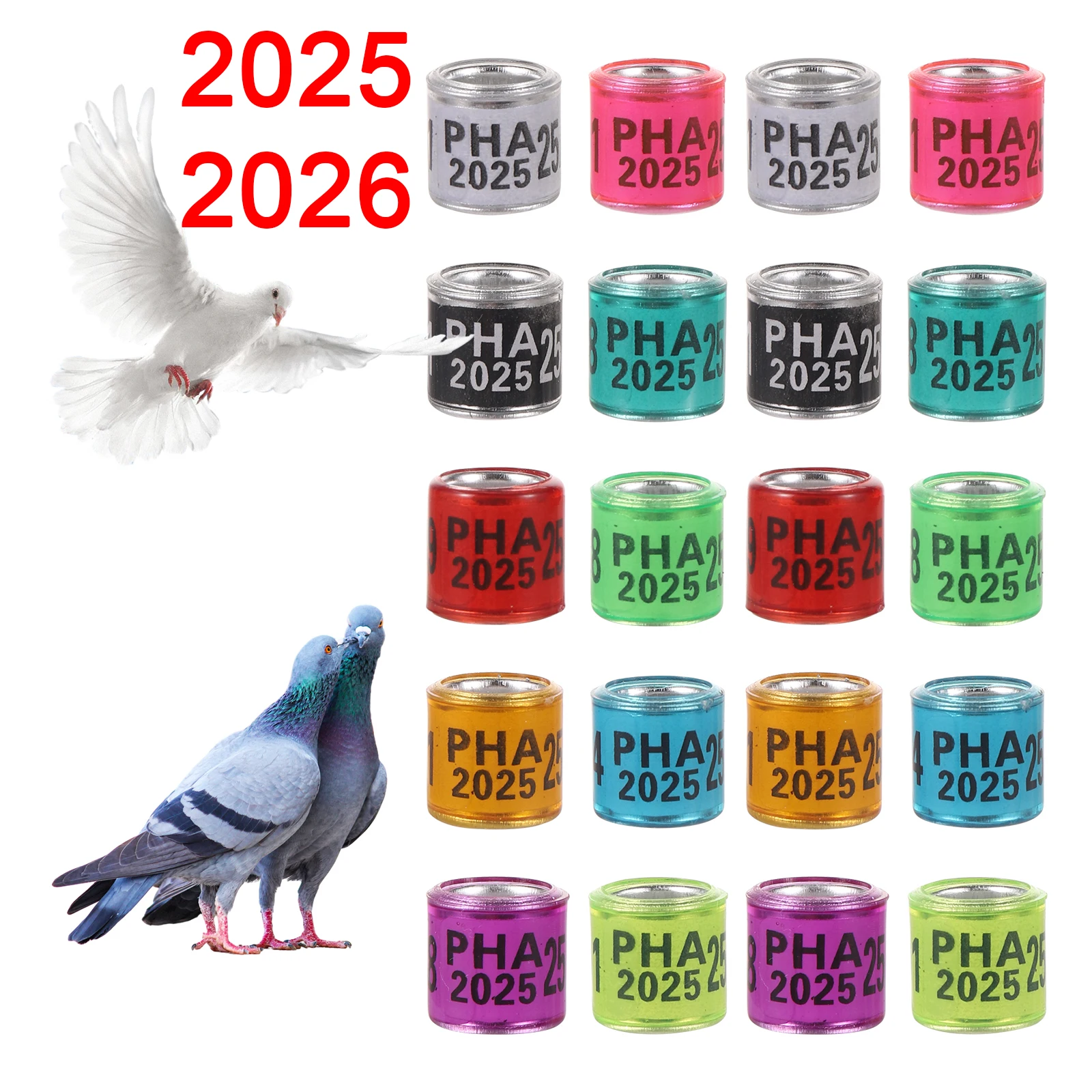 50pcs PHA 2025/2026 Pigeon Leg Rings 8mm Aluminum Plastic Bird Leg Rings Identification Rings Pigeon Racing Training Leg Rings