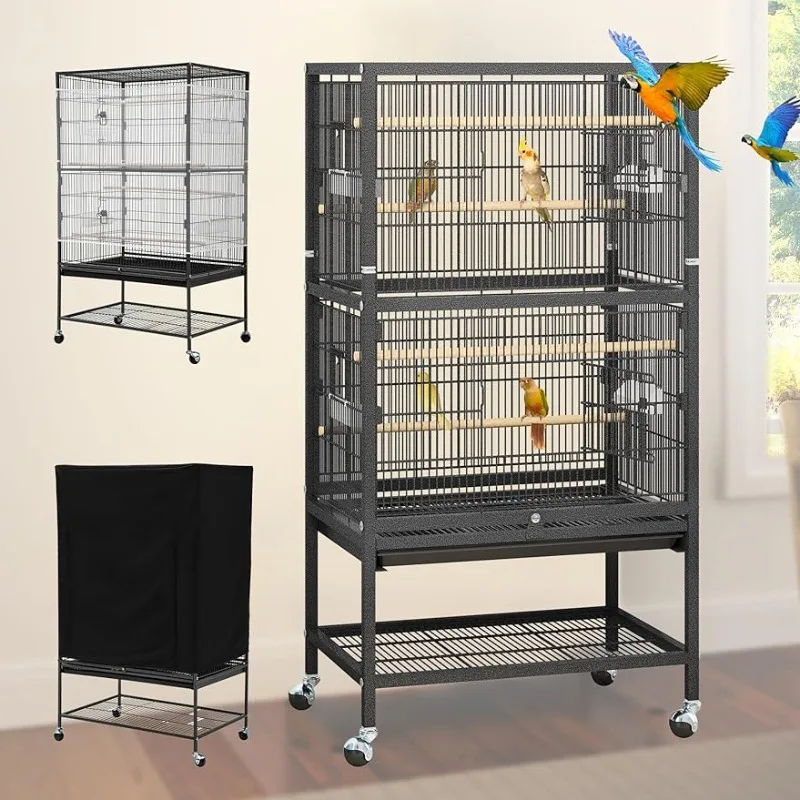 • Ideal for Small/Medium Birds:With dimensions of 24”×17”×53”(L×W×H), the large bird cage can easily accommodate 2-3 birds like budgerigars, parakeets, parrots, cockatiels, lovebirds, etc.